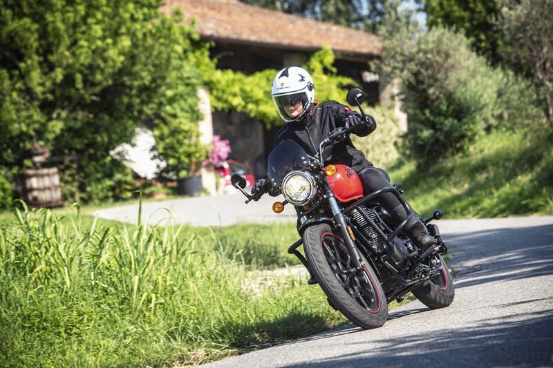 Sono tre gli allestimenti proposti (nella gallery qui sotto li vedete in sequenza), che rendono la Meteor "tre moto in una": quello base, minimal, che le dona un'aria da piccola custom, si chiama Fireball. Dettagli neri, specchietti al manubrio, logo sul serbatoio in stampatello e piccolo parabrezza.
