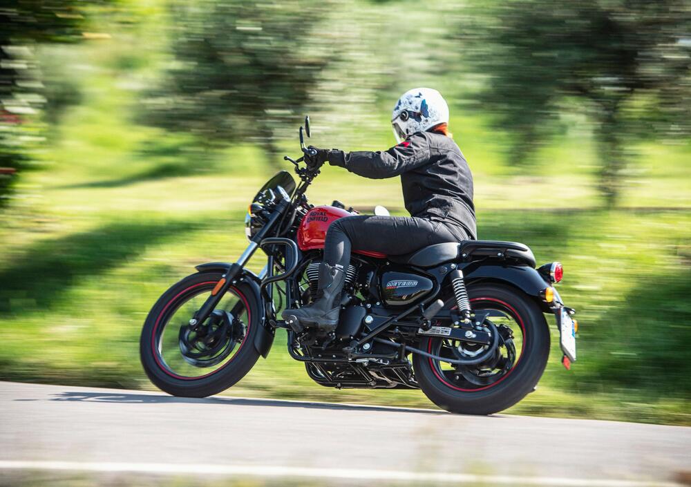Royal Enfield definisce la Meteor una easy cruiser e l'epiteto risulta calzarle a pennello: la sella bassa e confortevole - 765 millimetri da terra - la posizione rilassata, la totale assenza di vibrazioni e la semplicità di conduzione la rendono una perfetta compagna per l'utilizzo quotidiano ma, perché no, anche per viaggi più o meno lunghi.