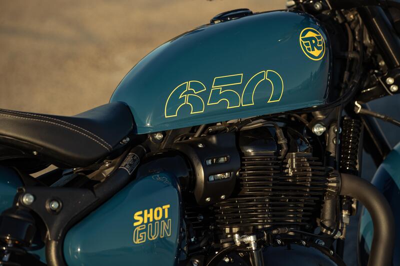 La Shotgun 650 è nata sotto forma della SG650 Concept, presentata all'EICMA 2021, ed è la risposta curiosa per il Concept che ha spinto Royal Enfield a esplorare una produzione di una moto di una motocicletta ispirata appunto al custom, ma con molte sfaccettature.