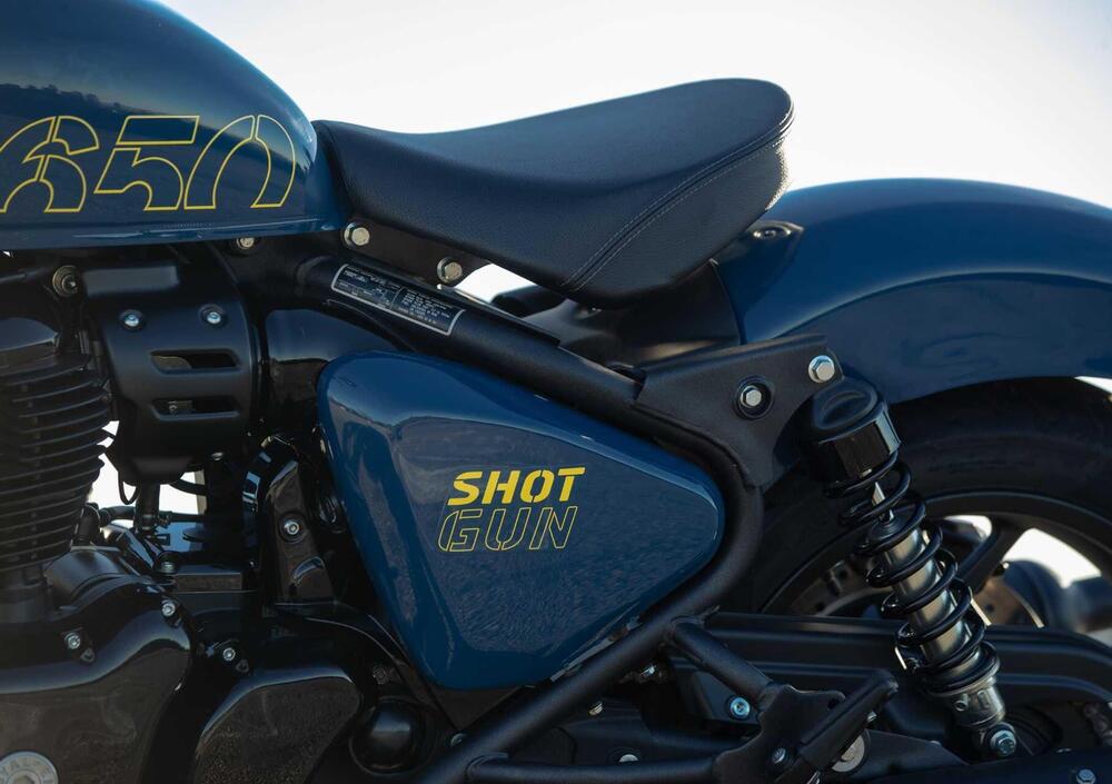 Per quanto riguarda la ciclistica la Shotgun 650 condivide il telaio con la Super Meteor, tuttavia cambia l'escursione della forcella e la corsa dei due ammortizzatori posteriori. Si scende a 120 mm per la forcella e si sale a 90 mm per gli ammortizzatori. Cambia quindi l'impostazione di guida, complice il manubrio più basso e delle pedane decisamente più arretrate. Il peso dichiarato sulla scheda tecnica è di 240 kg con il 90% del carburante, sono inclusi anche il supporto per la sella passeggero e il telaio di sostegno dedicato, entrambi rimovibili.