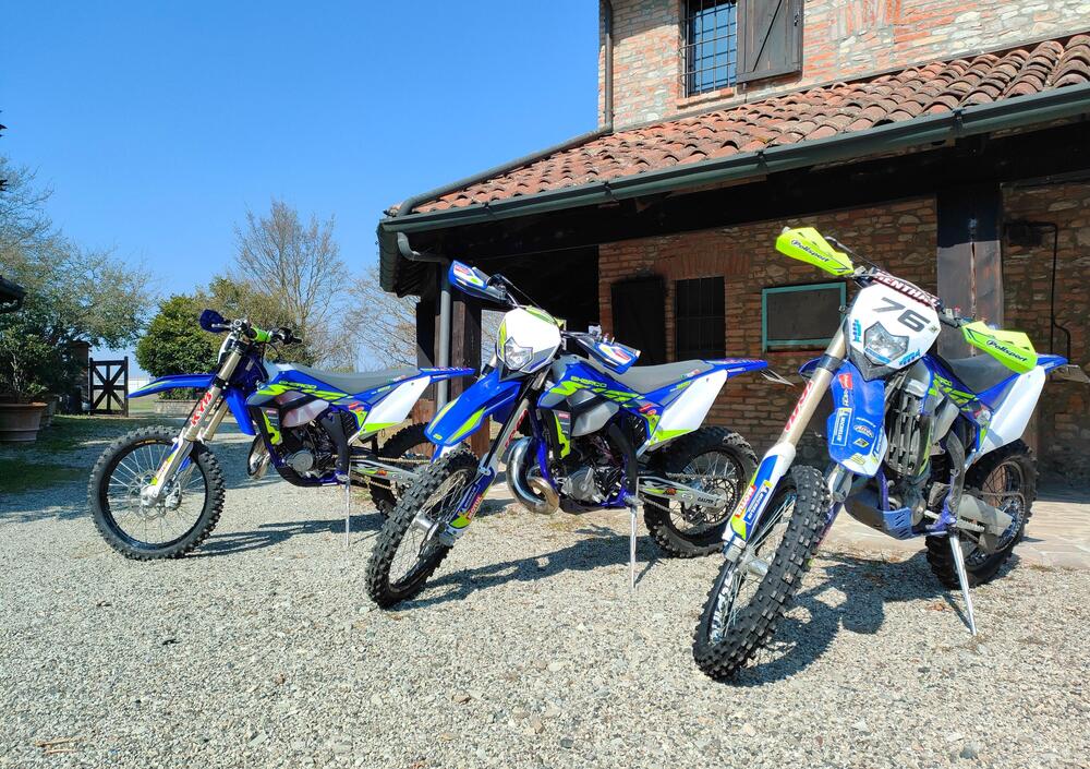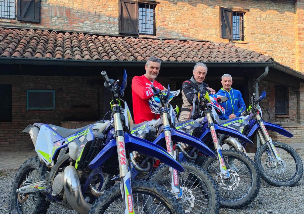 Con noi Fabrizio Azzalin, responsabile della squadra corse ufficiale Sherco e di Sherco Italia, insieme a Alessandro Tramelli e Daniele Madrigali, che si occupano dei corsi di enduro con le Sherco a Piacenza (Blubikecamp). Corsi che hanno una duplice utilità: ai neofiti consentono di apprendere correttamente le basi dell'enduro. Ai pro invece ragalano l'opportunità di provare le nuove Sherco e di passare una giornata di training con l'espertissimo Tram.