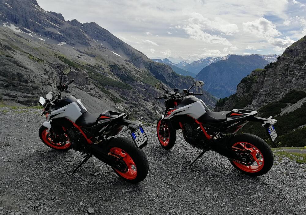 Con Continental abbiamo realizzato un test insolito. Siamo saliti sullo Stelvio e sul Gavia con le nuove KTM 890 Duke R per raccontarvi come si comportano su strada (con asfalti spesso rovinati e temperature basse) le gomme sportive in un confronto con le gomme destinate all'uso in pista (NB: ma omologate ovviamente anche per la guida su strada). Ad accompagnarci in questa avventura alpina sono con noi Giorgio Cattaneo e Alessandro Broia di Continental Italia.