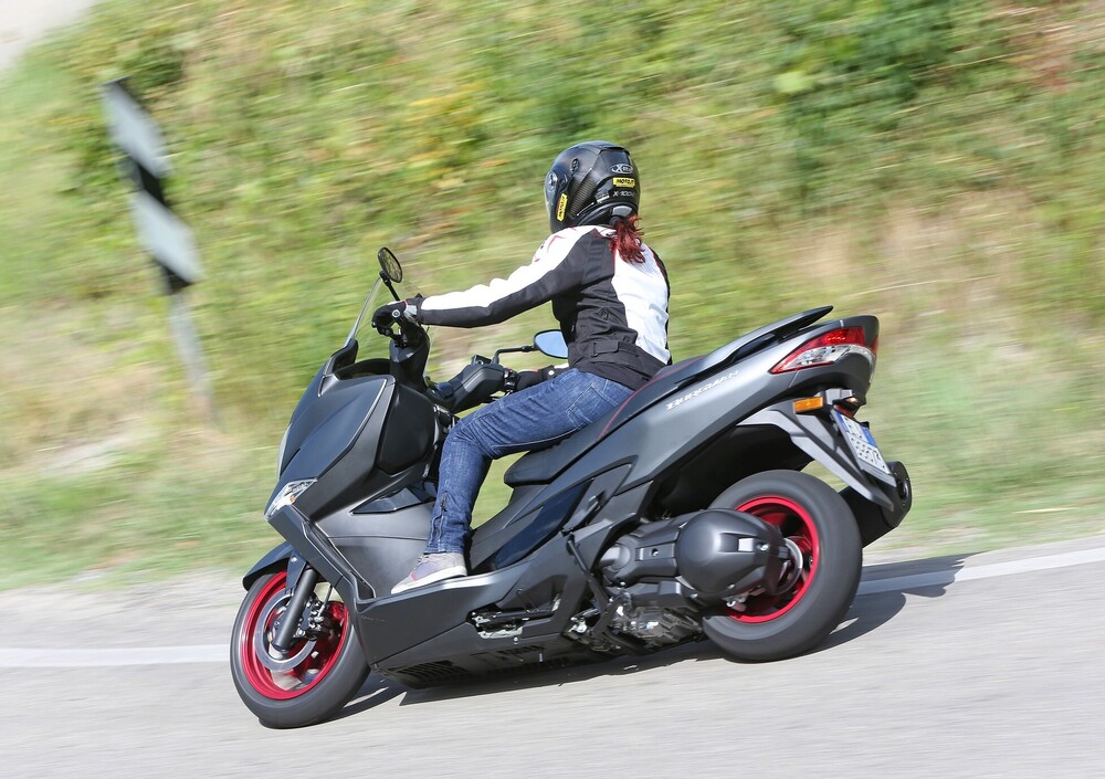 Il motore è progressivo e brillante, lo spunto è buono e l'allungo non manca, la frenata è molto molto modulabile e mai aggressiva, tant'è che ci si può divertire a piegare tra le curve più veloci giocando con freni e gas e potendo contare su un'ottima ciclistica e su una luce a terra tutto sommato soddisfacente. A fronte di queste prestazioni un controllo di trazione, ormai presente su tanti sooter, ci sarebbe stato bene: chi lo ama, chi lo odia, ma la sicurezza non è mai troppa sopratutto su questi mezzi che ormai sono sempre più tuttofare.