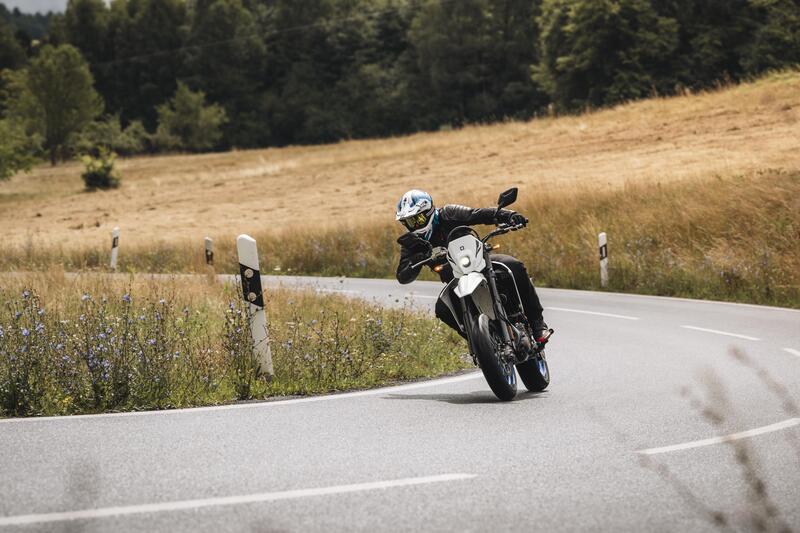 La vera magia, però, si rivela quando si disinserisce l'ABS al posteriore per dedicarsi ai traversi. Ed è qui che la DR-Z4 SM mostra la sua natura più giocosa: parte progressiva, mantiene la traiettoria con precisione millimetrica e nelle mani giuste può regalare belle soddisfazioni.