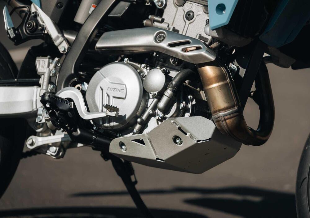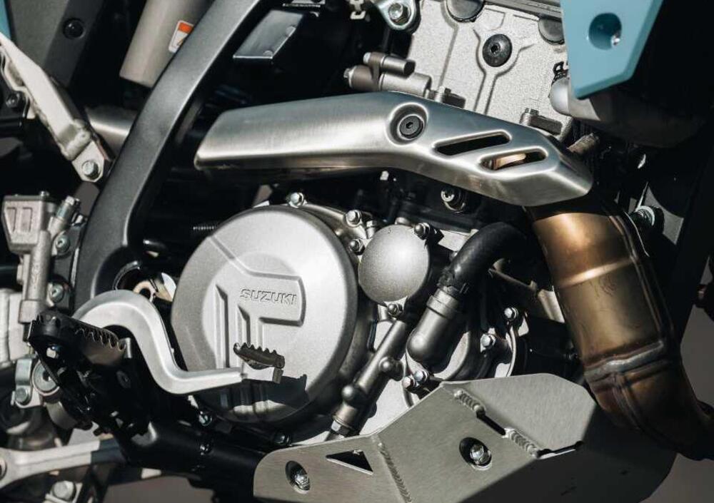 Il motore rappresenta il fulcro dell'evoluzione tecnica della nuova DR-Z4SM. Il monocilindrico 4 tempi da 398cc con raffreddamento a liquido e architettura DOHC mantiene la cilindrata storica, ma si presenta pesantemente ridisegnato per soddisfare le normative Euro 5+. Con un alesaggio per corsa di 90,0 x 62,6 mm e un rapporto di compressione di 11,1:1, il propulsore eroga una potenza massima di 38 CV (28 kW) a 8.000 giri/min, mentre la coppia massima tocca i 37 Nm a 6.500 giri/min.