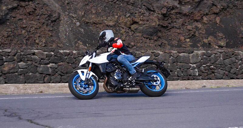 La moto è neutra negli inserimenti in curva, facile da gestire, individua l'esatta inclinazione e la mantiene senza tentennamenti, difficile metterla in difficoltà dal punto di vista della stabilità perché - ai ritmi stradali - le sospensioni fanno il loro dovere con rigore e invita ad affrontare sempre più allegramente le curve, supportati da un motore gustosissimo che ha nella forza sprigionata ai bassi e medi regimi la sua migliore qualità. Si può tranquillamente trottare in sesta lasciando che la coppia estragga dalla curve, oppure mettere la quarta e orbitare sempre tra i 5.000 e gli 8.000 giri dove il motore è gagliardo e consente di fare strada con facilità e scorrevolezza, aiutato da un quickshifter molto a punto.