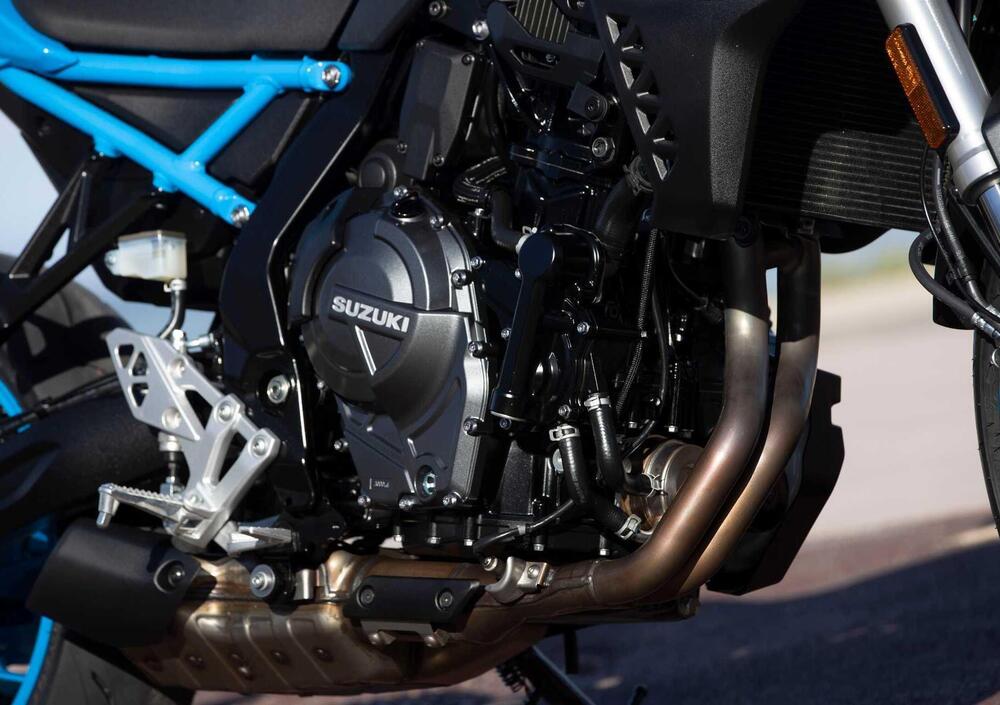 È una novità assoluta in casa Suzuki ed è condiviso con la sorella con le ruote artigliate V-Strom 800 DE: Suzuki ha affrontato il tema del bicilindrico in linea frontemarcia con alcune soluzioni personali: raffreddato a liquido, con 4 valvole per cilindro comandate da un doppio albero a camme in testa, il propulsore ha una cilindrata effettiva di 776 cc e la fasatura degli scoppi è di 270 gradi, che permette di avere un suono più vicino a un V di 90° e avvantaggia la trazione data l'irregolarità della successione degli scoppi. La potenza massima è di 83 cavalli 8.500 giri, mentre la coppia mostra un picco di 78 Nm a 6.800 giri.