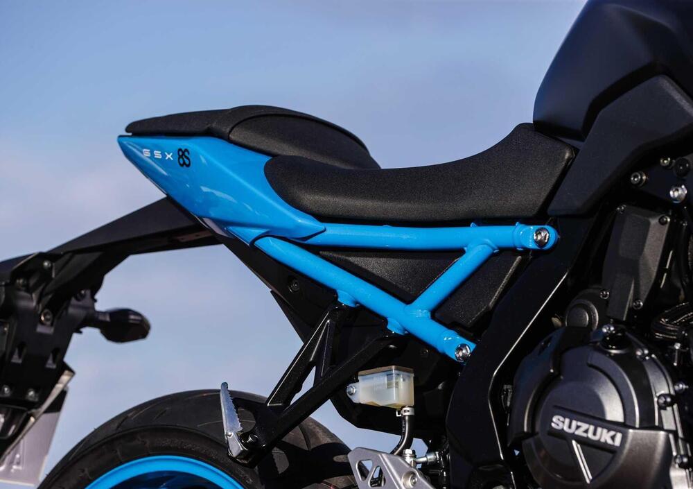 Totalmente diverso l'approccio scelto per la GSX-8S: aggressiva, dallo stile minimale e votata anche al “fun” e alla sportività. Non per nulla, come dicevamo, si chiama GSX!