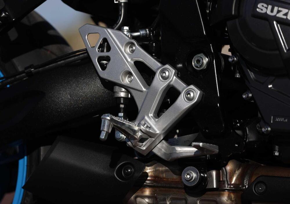Chi scrive ha fretta di raccontarvi del carattere del motore, quindi sbrighiamo la pratica “finiture” dicendovi subito che sono tipicamente Suzuki, ovvero concrete, solide e inappuntabili: traspare un alto livello di ingegnerizzazione, basta osservare anche i dettagli dei coperchi del carter motore o la realizzazione del forcellone in alluminio. Forse lo scarico avrebbe meritato una maggiore valorizzazione ma capiamo perfettamente il difficile compito di coniugare forma, funzione e costi.
