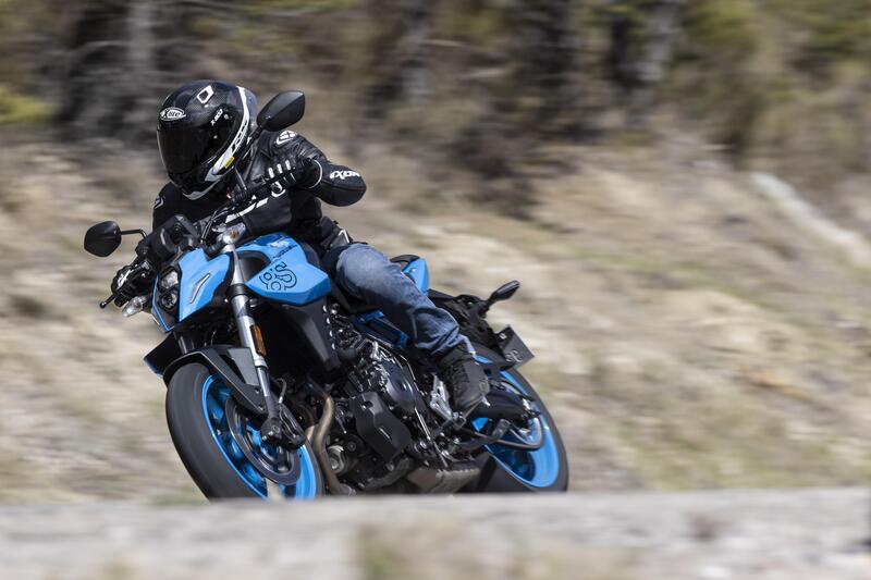 Ma la caratteristica che abbiamo amato di più in questo test della GSX-8S è la castagna ai bassi e medi regimi del bicilindrico di 776 cc, che non esitiamo a definire - fatti i dovuti distinguo - per intensità e carattere "esplosivo" pari a quella di un potente monocilindrico. Grazie al buon lavoro del ride by wire, la connessione tra manopola e ruota posteriore restituisce il metro con il quale affrontare allegramente le uscite di curva e basta stare sopra i 2000 giri per avere una spinta gratificante e gustosissima. Per contro, in alto – oltre il regime di potenza massima – il motore “mura” un po' e pur non arrestando bruscamente l'erogazione rende molto più proficuo passare al rapporto successivo. E qui entra in gioco il quickshifter di serie: ottimo sia in scalata che in salita, rende il giochino dello “shortshift” (ovvero cambiare rapporto rapidamente senza attendere il raggiungimento dei massimi regimi di rotazione del motore) divertentissimo per la capacità della streetfighter di Hamamatsu di fare tantissima strada con poco impegno mentale. Se non si sta molto all'erta è praticamente certo trovare numeri sul tachimentro imbarazzanti in spazi (e tempi) brevi e una partenza allegra può tradursi in impennata con inquietante facilità.