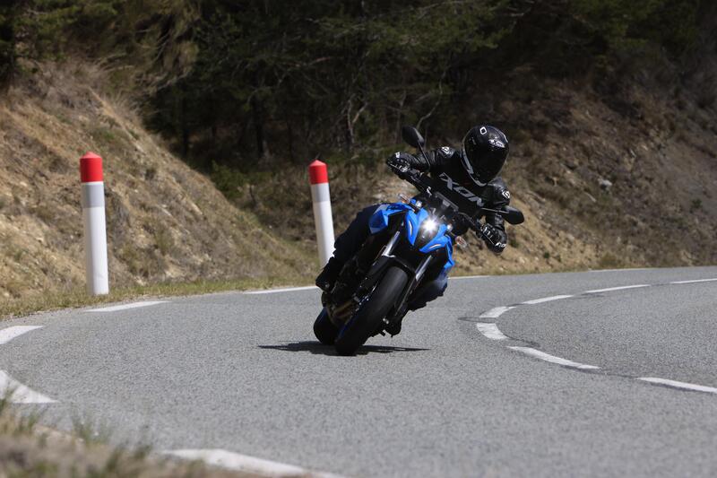 Ma non bisogna affatto pensare che la GSX-8S sia una moto nervosa, anzi: è molto stabile e sicura, progressiva negli inserimenti, con un assetto controllato cui potremmo imputare soltanto qualche ondeggiamento nelle asperità affrontate in curva a gas spalancato e per le quali avremmo desiderato poter controllare il freno idraulico del mono posteriore. Dopo qualche chilometro di apprendistato si può superare la “comfort zone” ed esplorare le capacità ciclistiche di rapidità di inserimento in curva anche con in freni in mano (a proposito: il modulabile disco posteriore aiuta in curva ma non bisogna esagerare con la pressione sul pedale pena l'intervento dell'ABS), rigore direzionale e neutralità in uscita di curva dove è facile controllare la spinta del bicilindrico, indirizzare la moto dove si vuole e inserire i rapporti a raffica, che gusto!