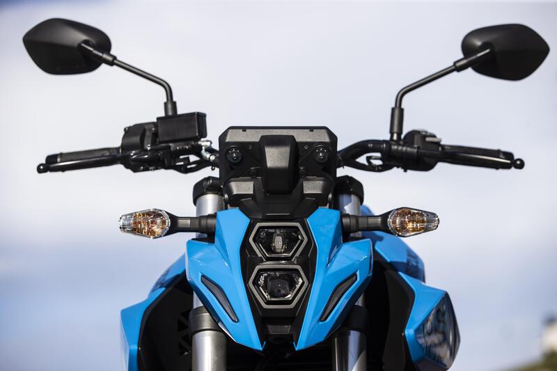 L'impianto di illuminazione è Full LED (anche se gli indicatori di direzione restano alogeni nella versione che abbiamo avuto in prova) con le luci di posizione che determinano una personale firma ottica, e sul manubrio troviamo blocchetti elettrici razionali come sulle sorelle più grandi GSX-S1000GT o Hayabusa.