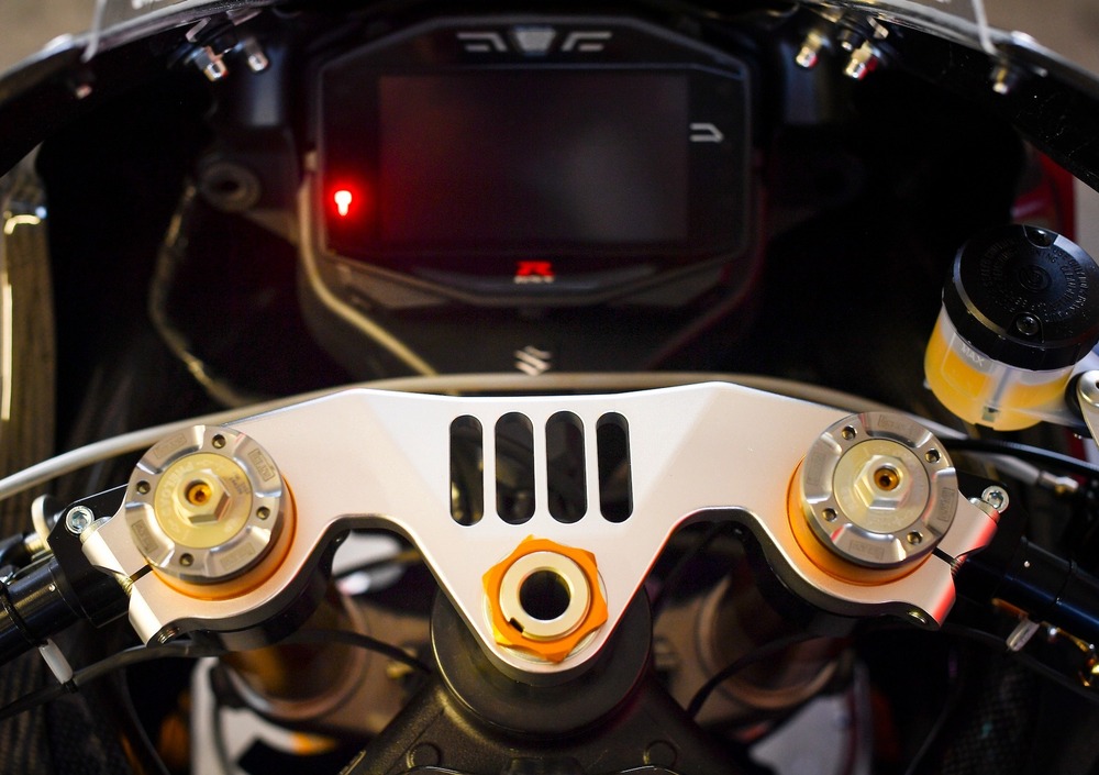 Certo, ci sono accessori dedicati dai vari costruttori a questo e quel modello, ma rimaniamo sempre un passo indietro a quello che ha fatto Suzuki con questa moto, e vi spieghiamo il perché. Tre piloti, che in Suzuki preferiscono mantenere anonimi, ed una serie di professionisti del settore, con le mani in pasta per quanto riguarda il mondo racing (Burani Moto) e la componentistica di altissimo livello (Extreme Components - Andreani Group - Bonamici), di quella che porta in automatico a “leccaggio dei baffi”, hanno sviluppato e realizzato questa vera e propria STK quasi di serie.