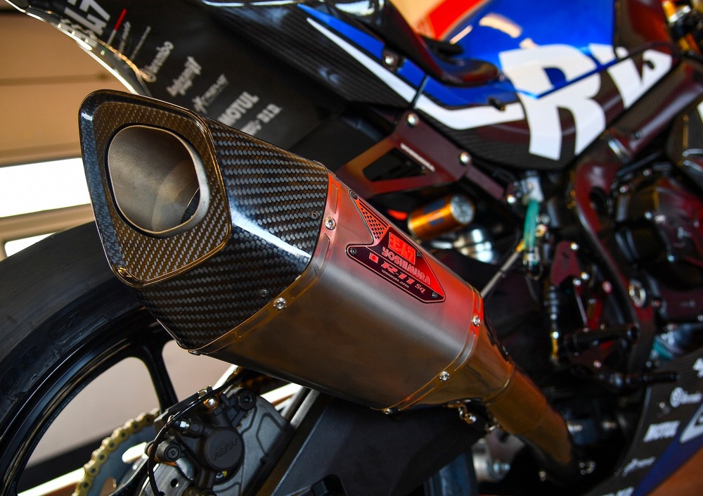 Da sottolineare che Andreani metterà a disposizione la propria esperienza per i clienti di questa esclusiva Suzuki, infatti questi potranno contare su un setting personalizzato, realizzato ad hoc, sulla base delle esigenze del pilota, in base al suo peso ed allo stile di guida. Il motore è la componente che nel complesso ha richiesto meno modifiche, di fatto è stato sostituito lo scarico di serie con uno Yoshimura e relativa centralina dedicata, con due mappe motore, controllo di trazione e delle impennate (il tutto ampiamente regolabile). Anche il lubrificante, particolare nascosto alla vista, ma di vitale importanza per il propulsore, è specifico per questa “Gixxer”, ed è fornito da Motul. Il Motul 300V2 4T Factory Line 10W-50 che scorre nel motore della Ryuyo garantisce la massima protezione nell’utilizzo in pista e un leggero incremento di potenza rispetto a quello di serie.