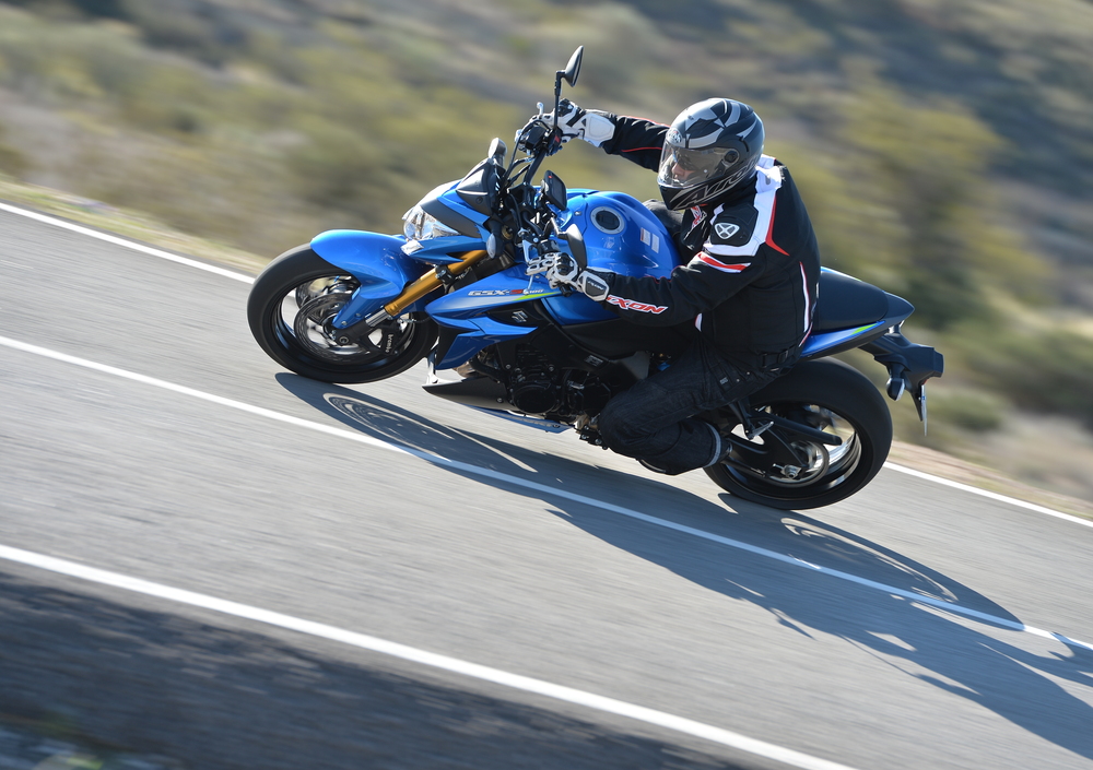 In sella alla GSX-S1000 ci si diverte certamente: la sua leggerezza (ricordiamoci che pesa 209 chili in ordine di marcia, 3 in meno rispetto alla settemmezzo), unita ad un bilanciamento dei pesi e quote ciclistiche "svelte" (interasse di 1.460 mm), ne fanno un oggetto di assoluto divertimento nel misto stretto. Cambi di direzione e inserimenti in curva sono pane per i suoi denti; precisa e composta, la GSX-S1000 morde letteralmente l'asfalto e divora le curve. Certo le strade spagnole, perfettamente asfaltate e con poche buche, aiutano parecchio, ma che il comportamento della naked giapponese sia sano si percepisce facilmente. Soprattutto dopo aver messo mano alla forcella che sulle prime era apparsa troppo cedevole in compressione e un filo sfrenata in estensione, con conseguenti scompensi dell'assetto soprattutto nei cambi di direzione e in frenata.