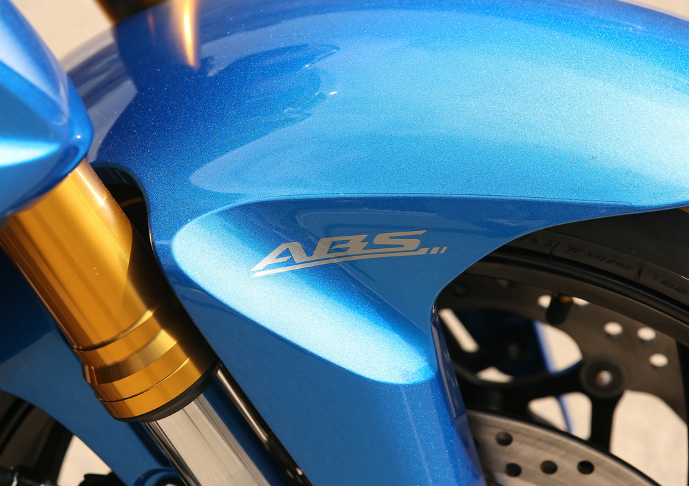L'impianto frenante si affida a Brembo per quanto riguarda le pinze freno, identiche a quelle che monta la GSX-R1000, con attacco radiale e quattro pistoncini, dischi da 310 mm con antibloccaggio Bosch (non disinseribile).
