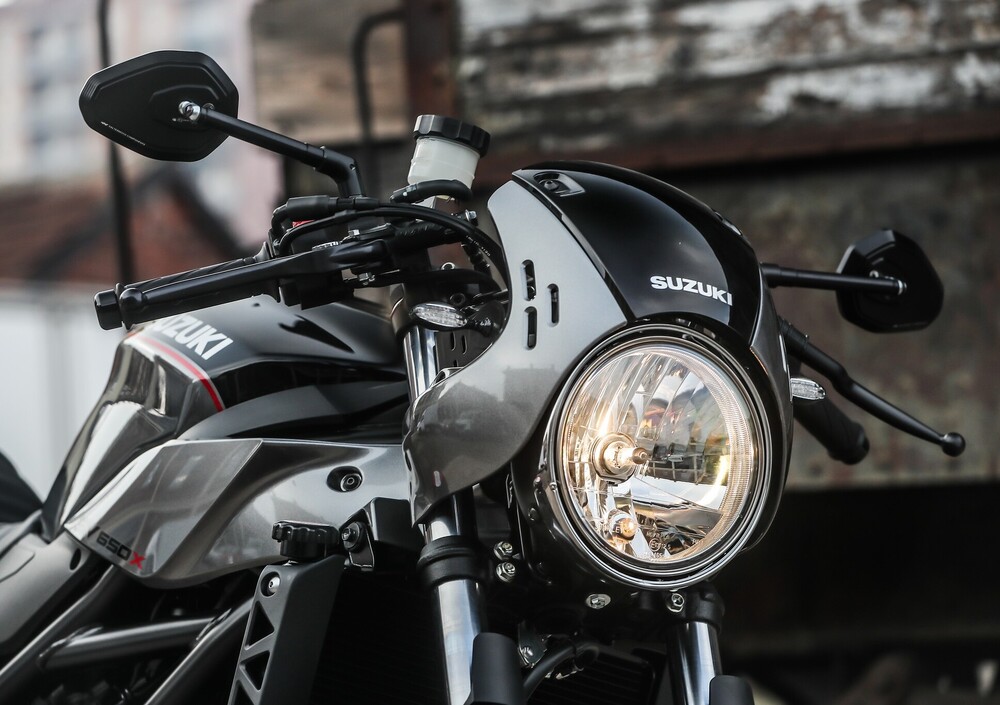 Basta una veloce occhiata per capire che la SV650X è nata sulla base della ben nota nuda con il manubrio alto: le modifiche più importanti riguardano la posizione di guida. La SV650X monta dei corsaioli semi-manubri in stile cafè racer, e il faro anteriore è incorniciato da uno sportivo scudo arrotondato che le dona un tocco di aggressività. Inoltre, la sella ha delle rifiniture “a cannoncino” che ricordano molto i mezzi guidati dai giovani del movimento Rocker che animavano i locali negli anni ’60.