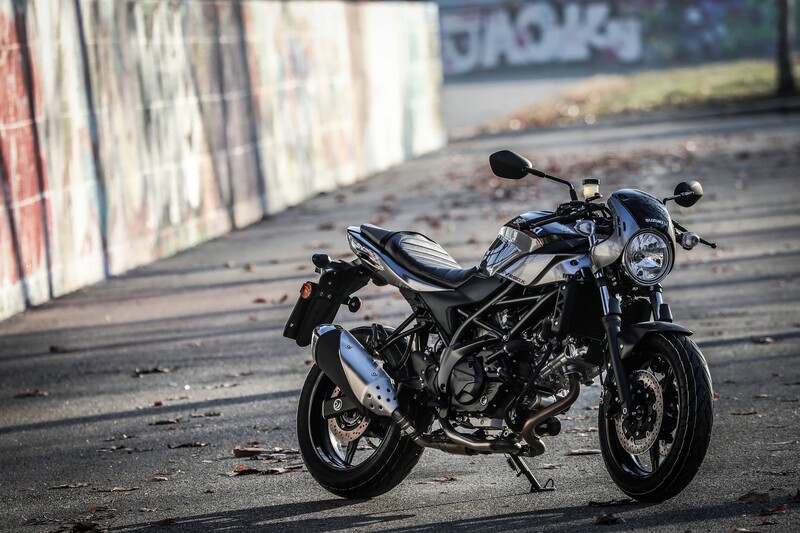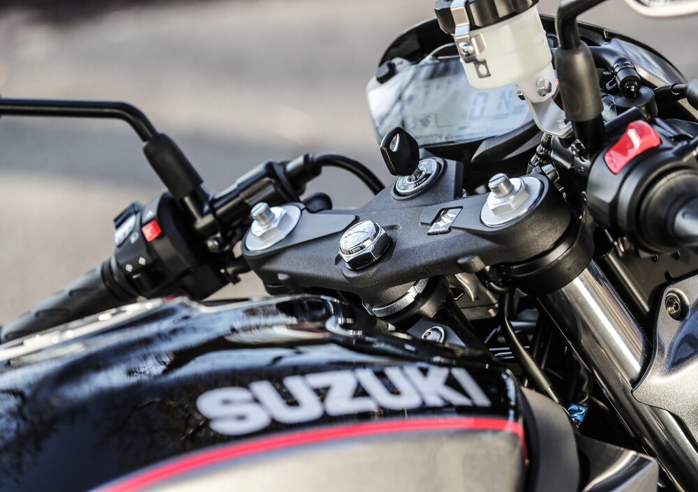 lkA completare il quadro, la piccola carenatura sotto il serbatoio, che dà continuità al cupolino, e la colorazione bicolore Glass Sparkle Black-Metallic Oort Grey. Tanti i particolari in nero, come le pedane, il radiatore e i semi-manubri. Gli amanti dei dettagli avranno sicuramente notato la boccetta del liquido freni esterna, che esalta lo spirito racing della SV650X.