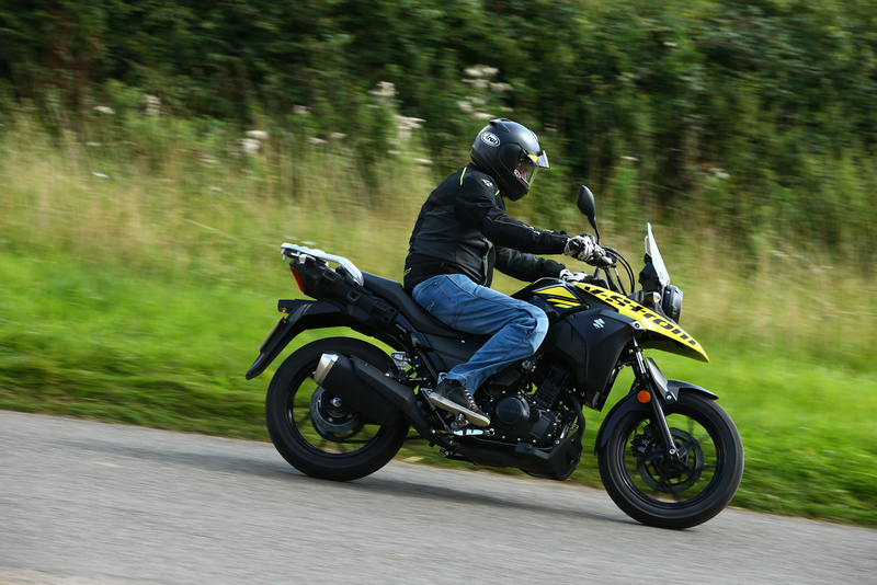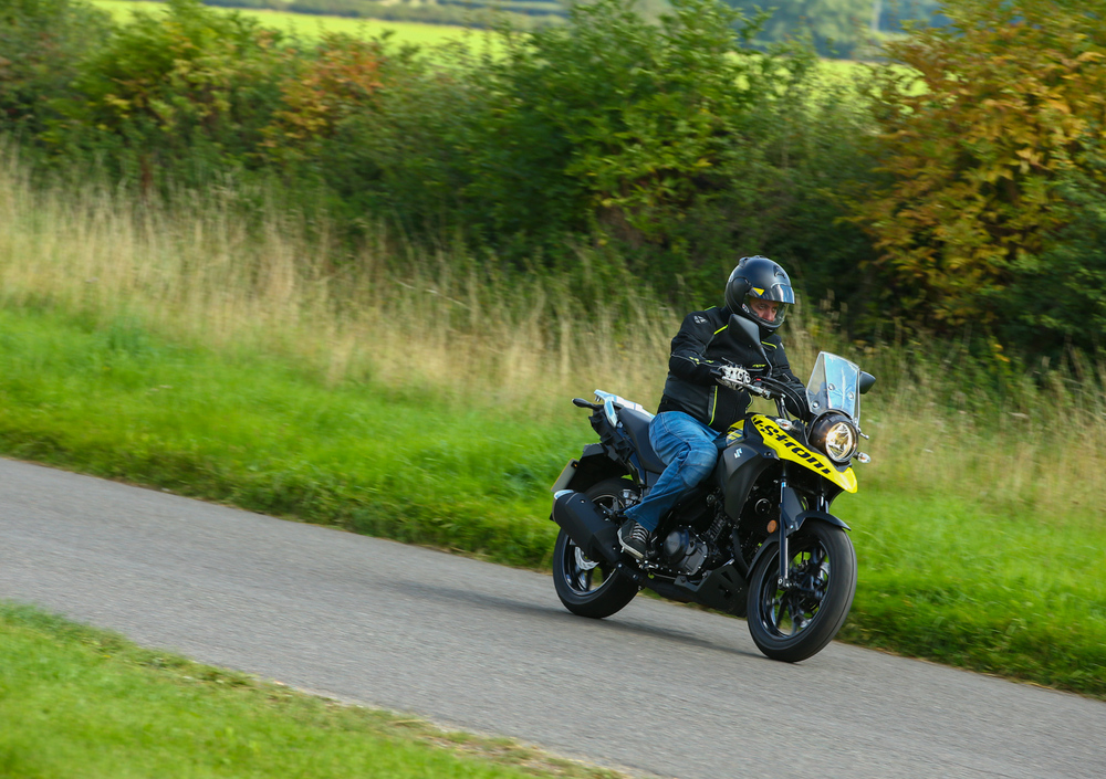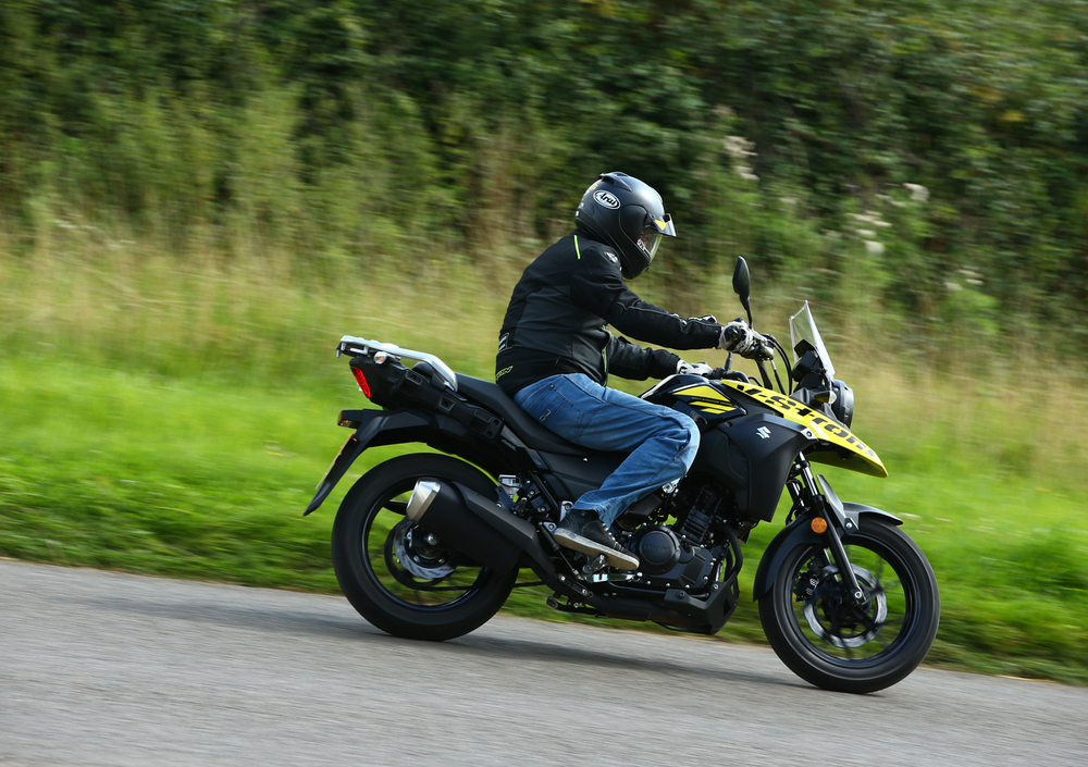 Premettiamo che qui non si deve certo aver fretta di arrivare; in compenso il comfort e le caratteristiche di guida fanno della V-Strom d'accesso un’ottima compagna di viaggio. Il fatto che non si debba avere fretta è logicamente legato alle prestazioni del suo motore da una quarto di litro, un bicilindrico in linea che eroga 25 cv a 8.000 giri: non molti in assoluto, ma in compenso con una erogazione della coppia che raggiunge il picco di 23,4 Nm a 6.500 giri, abbastanza corposa sin dai bassi regimi, e che rende discretamente pronta in fase di ripresa la duemmezzo giapponese.
