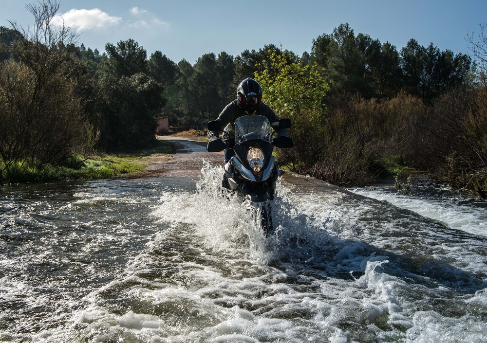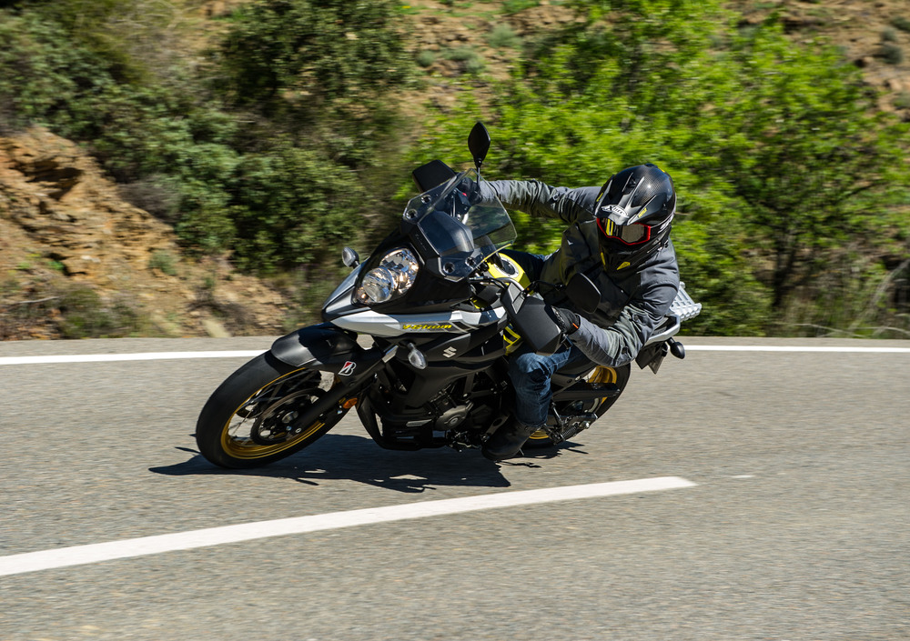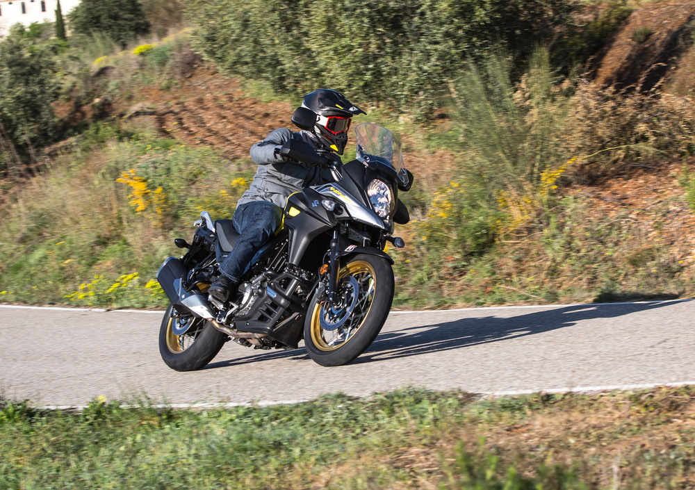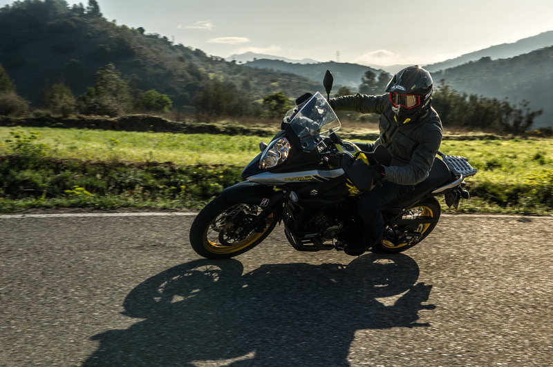 La guida nel misto della nuova Suzuki regala ancora grandi soddisfazioni. Nella conduzione sportiva la V-Strom sorprende anche i piloti più scafati con una ciclistica agilissima, ma anche stabile e precisa. La forcella in particolare ha un comportamento efficace, con trasferimenti di carico limitati e una buona scorrevolezza. Il mono lascia invece la moto piuttosto seduta, ma abbiamo migliorato la sua risposta indurendo di due giri il precarico (in questo modo abbiamo anche limitato gli sfregamenti delle pedane sul terreno). La frenata è stata rivista dalla Suzuki e si è rivelata perfetta per modulabilità e potenza, tanto che risulta assai difficile far intervenire l'ABS.
