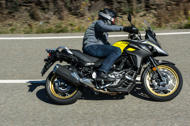 Il motore mostra subito tutte le sue qualità. E' silenzioso di meccanica, privo di vibrazioni e non scalda mai. A questo aggiungete che consuma in effetti sempre molto poco e che ha un range di utilizzo meraviglioso. Scende a meno di 2.000 giri in sesta e riprende senza strappi e con tanta regolarità. Ai medi la coppia è migliorata e consente di tenere tranquillamente la quarta anche sulle strade collinari. Dai 6.000 giri e fino ai 10.500 giri della zona rossa mostra anche un bel carattere brillante, accompagnato da una sonorità di scarico sportiva (ma non fastidiosa). Il cambio è ben spaziato e perfettamente manovrabile; a 130 orari il motore riposa a circa 6.000 giri, con ancora tanto margine per gli allunghi e per i sorpassi. La Suzuki V-Strom 650 dispone del sistema Low RPM Assist che alza leggermente il minino, quando si rilascia la frizione a basso regime per aiutare la guida della moto in città e nel traffico.