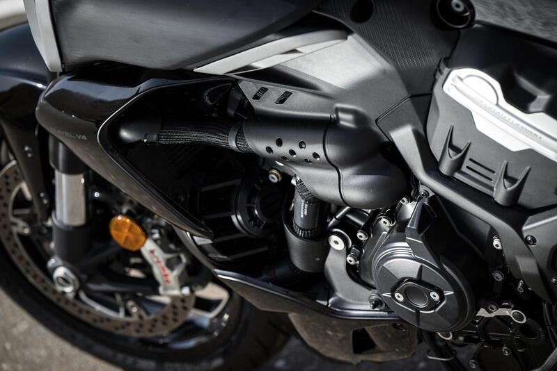 Il V4 lo conosciamo bene, e anche in questa declinazione si dimostra un gran motore, capace di andare a spasso fluido e progressivo, così come di far disegnare alla gomma posteriore lunghe linee nere sul nastro d'asfalto in uscita di curva.