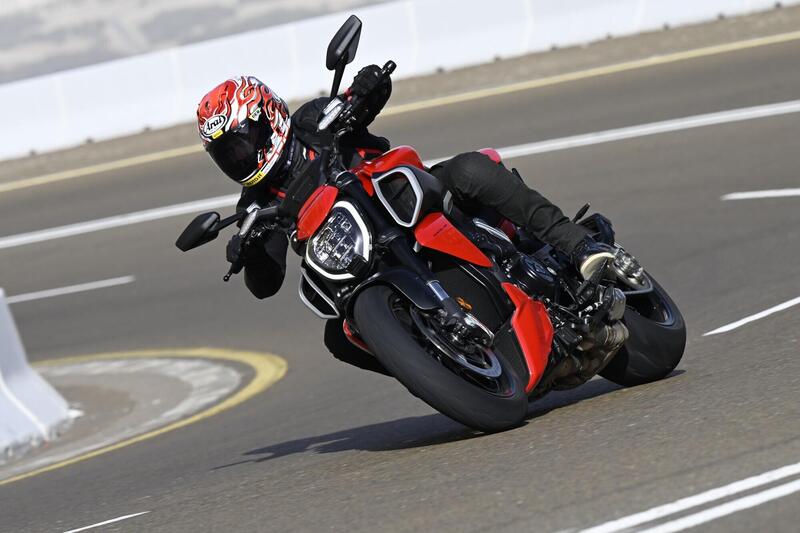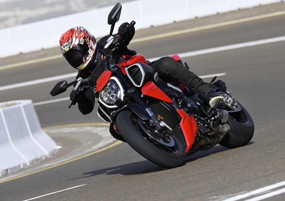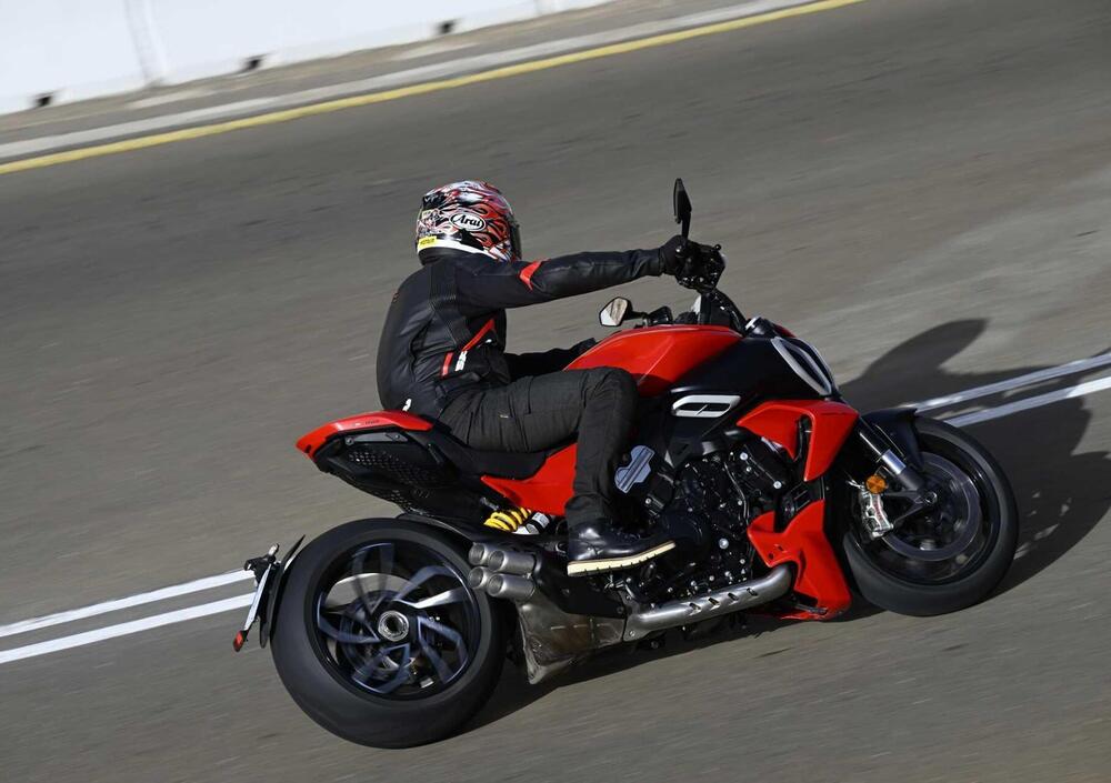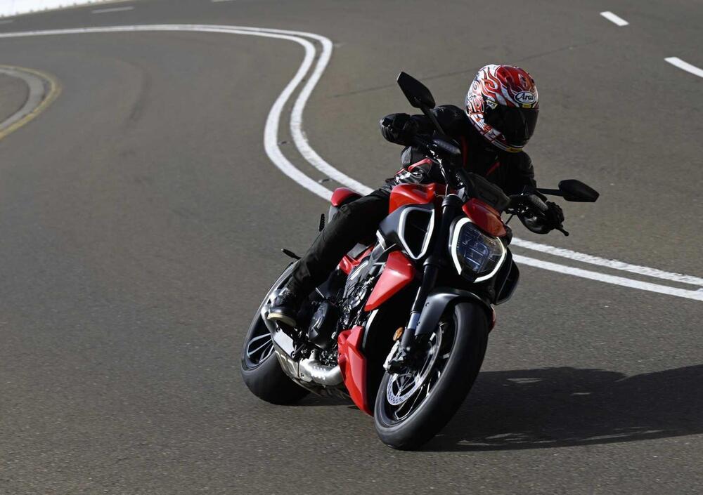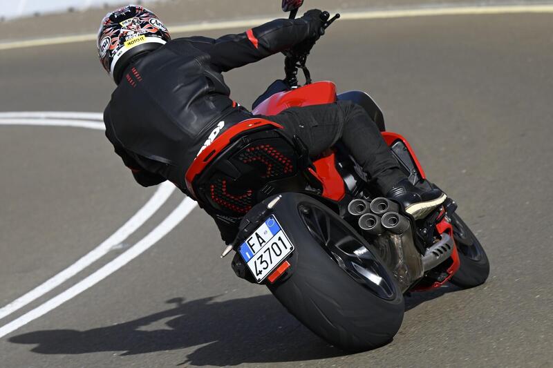 Svelta nei cambi di direzione, veloce a scendere in curva, nonostante il profilo del pneumatico posteriore, che è inutile nasconderlo, si percepisce, ma non infastidisce, la Diavel V4 si dimostra ben più agile e leggera da guidare rispetto a una "1260".