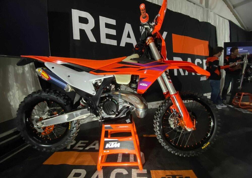 Six days: anche per il 2024 KTM propone in versione Six days l’intera gamma enduro, ad eccezione della 150 due tempi. Per la nuova versione, oltre che una bellissima livrea in linea con la gara più ambita dell’anno che si disputerà in Argentina, troviamo le piastre color arancio ricavate dal pieno, il paramotore in plastica e numerose diavolerie del catalogo Power Parts (protezioni disco, perni ruota, ecc..) che la impreziosiscono e la rendono ancora di più pronto gara.