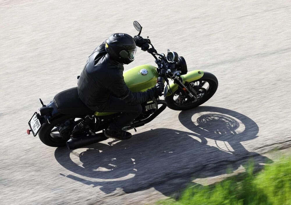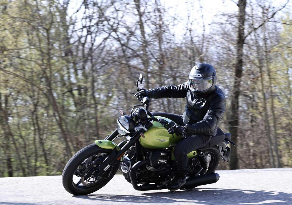 Vellutato, questo il termine per descrivere questa versione raffreddata ad aria del bicilindrico di Mandello, pastoso e morbido, ma non flaccido, ha carattere e personalità. Il cambio non è un fulmine e neanche particolarmente silenzioso ma funziona a dovere, e rapportato bene, con una sesta lunghissima che permette trasferimenti veloci a regimi contenuti.