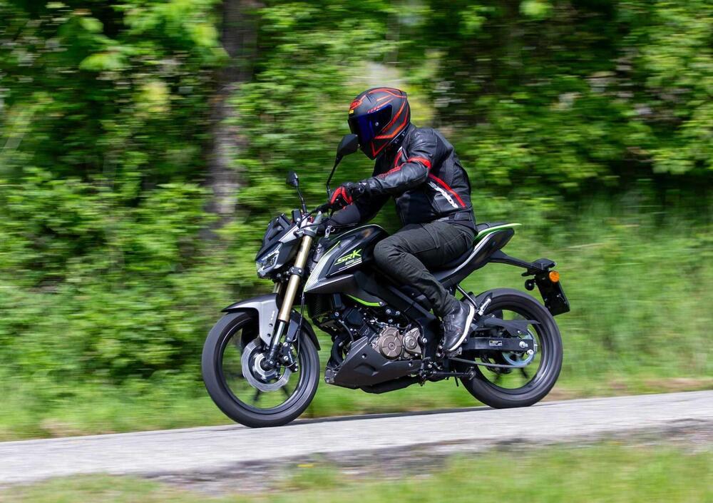 La SRK 125S li soddisfa entrambi, essendo particolarmente amichevole nella guida, e con quella giusta dose reattività che la rende divertente nel misto stretto.