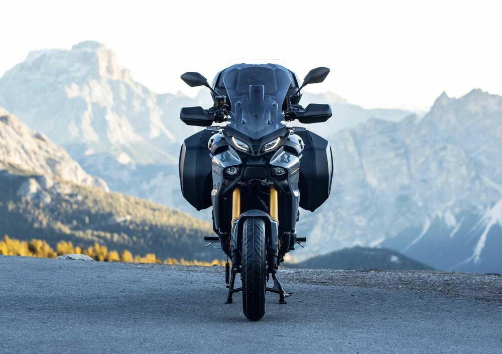 Un occhio attento noterà un particolare celato tra i gruppi ottici, una plastica che protegge la vera novità di questa moto per il 2023: il radar a onde millimetriche a supporto del sistema di controllo adattativo della velocità (ACC, Adaptive Cruise Control) e del sistema di frenata unificato (Unified Brake System) collegato al radar.