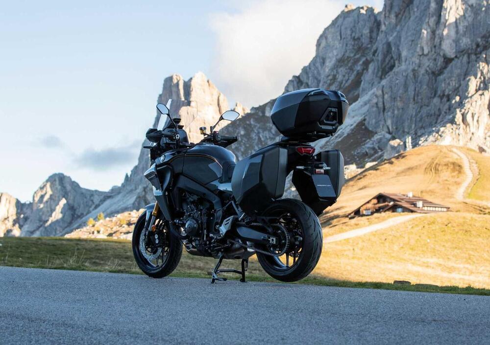 Interessante la possibilità di poter dotare la Tracer 9 GT degli accessori presenti nel Travel Pack Pro, che prevede oltre al bauletto da 45 lt con schienalino, anche le selle confort (con quella del guidatore riscaldabile), il parabrezza maggiorato, i fendinebbia, le protezioni per motore e radiatore, una presa USB aggiuntiva e un prolungamento del cavalletto.