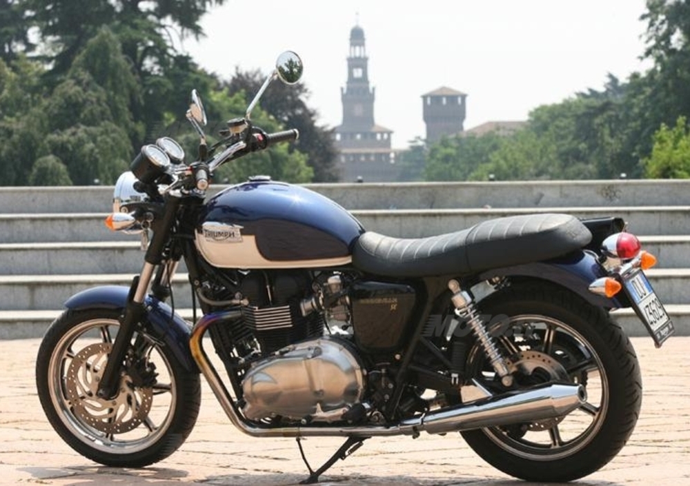 Giusto per dare una rinfrescatina alla tecnica, l’ultimo discendente del leggendario Speed Twin di Ted Turner ne conserva rigorosamente le caratteristiche di base. Bicilindrico verticale parallelo fronte marcia, quindi, rigorosamente raffreddato ad aria - ma con il radiatore dell’olio sistemato appena sotto al cannotto di sterzo, particolare un tempo riservato ai motori “preparati” – e con l’albero motore fasato a 360°: in soldoni, i due pistoni vanno su e giù contemporaneamente. Naturalmente qui abbiamo la distribuzione bialbero in testa e quattro valvole per cilindro (anziché due, comandate da aste e bilancieri), e il cambio a cinque marce in blocco, sebbene i due coperchi sul lato sinistro simulino visivamente la presenza di un cambio separato (com’era il vecchio a quattro marce). Nato “498”, il leggendario propulsore britannico negli anni crebbe fino ai 650 cc della Bonneville forse più celebre, vera icona del motociclismo inglese ovvero che imperava negli anni sessanta, per terminare la sua gloriosa carriera con la T140 da 744 cc, che segnò la chiusura definitiva della Triumph prima della graditissima rinascita ad opera dell’industriale John Bloor.