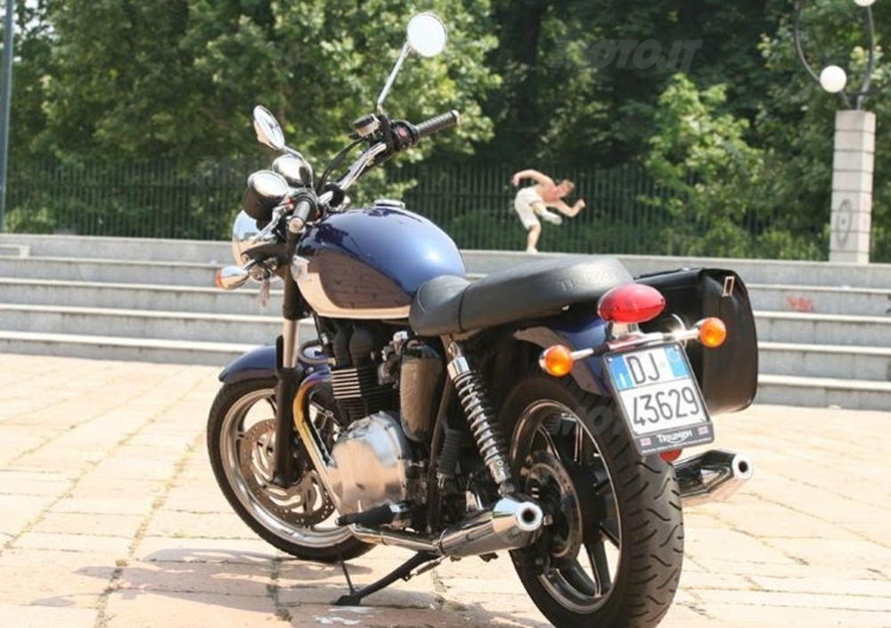La nostra Bonneville SE, vezzosamente dotata di elegante borsa portadocumenti laterale in cuoio (altro optional, da ben 320 euro), con tanto di comoda cuffia impermeabile “griffata” Triumph in dotazione, ci ha piacevolmente accompagnato – parlo a nome di tutta la redazione - per oltre duemila chilometri percorsi un po’ ovunque, e con grande soddisfazione. Vuoi perché è una moto assolutamente rilassante, vuoi perché consuma come uno scooter di media cilindrata, tant’è che abbiamo sempre percorso tra i 20 ed i 22 km/litro, con un’autonomia media di circa 360 chilometri prima che si accendesse la spia della riserva (che, anche se non sembrerebbe, è visibilissima anche col sole a picco). Esteticamente trovo questa moto bella ed elegante, anche se il carisma della più classica T100 la rende maggiormente affascinante. Però questa ha una guida più moderna, in grado senza dubbio di appagare molto di più anche chi ama godersi i misti di montagna dandoci un po’ dentro alla sportiva. Questa ciclistica, insomma, è talmente neutra, solida e precisa che si prova davvero un gran gusto a guidare con molta scioltezza senza il minimo sforzo, anche con una mano sola. Tutto sommato, oltretutto, non è che si pieghi così poco…
