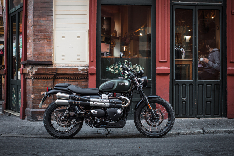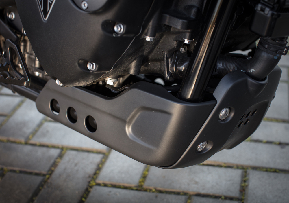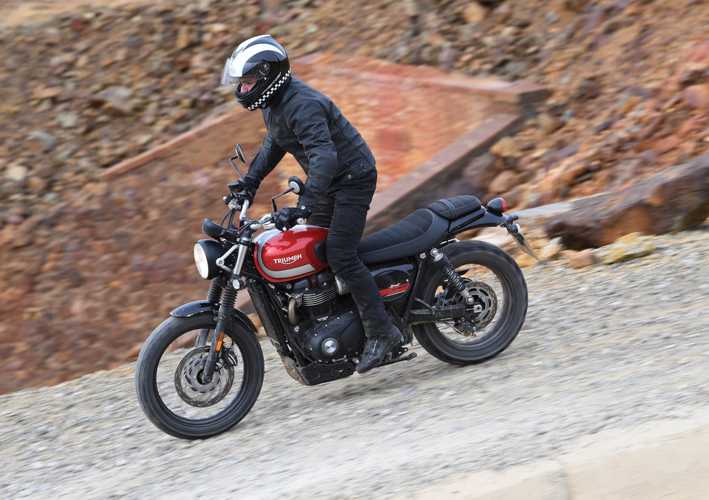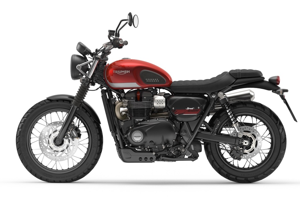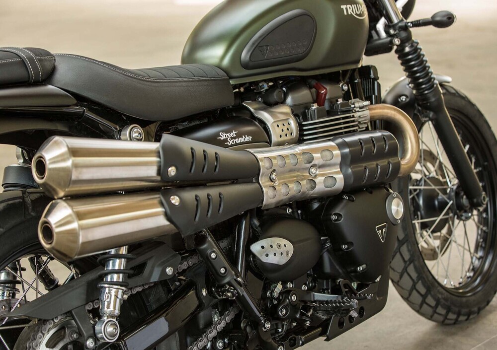 Come per la Street Cup, la sostanza motoristica e ciclistica deriva molto da vicino da quella della Street Twin. Il motore è lo stesso bicilindrico parallelo High Torque monoalbero da 80Nm a 3.200 giri e 55cv di potenza, con alesaggio e corsa di 84,6 ed 80mm e fasatura del manovellismo a 270° (come del resto la precedente Scrambler), ma con un’erogazione spostata un po’ più in basso grazie al nuovo impianto di scarico ed alla relativa accordatura della gestione elettronica.