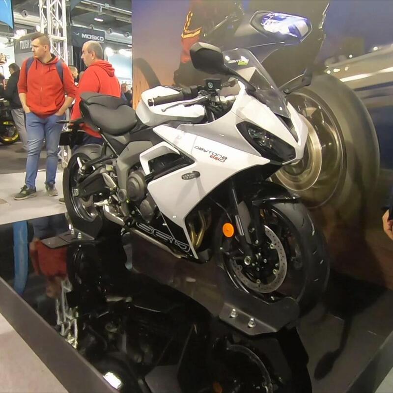 La Daytona condivide il motore con la Trident, la roadster, e con la Tiger Sport 660, due moto che hanno già venduto oltre 40.000 unità fino ad ora grazie alla loro accessibilità globale e ai costi di gestione molto contenuti. Attenzione però, il motore è stato rivisto in modo importante per garantire prestazioni al vertice della categoria, senza comunque perdere affidabilità e sfruttabilità nel contesto stradale. Il motore è stato aggiornato con un nuovo albero, una nuova testa del cilindro e un pistone con un rivestimento ad alto scorrimento. Aggiornati e ingranditi i corpi farfallati (sono tre, da 44mm ciascuno) e ingrandito l'airbox. Cambia anche il sistema di raffreddamento e lo scarico, con un sound ancora più coinvolgente.