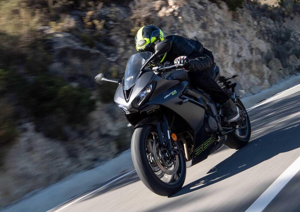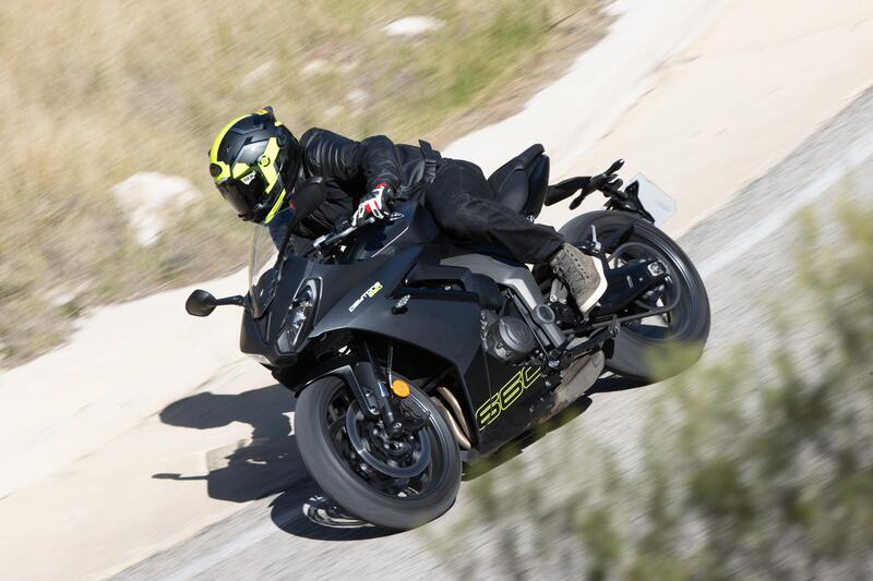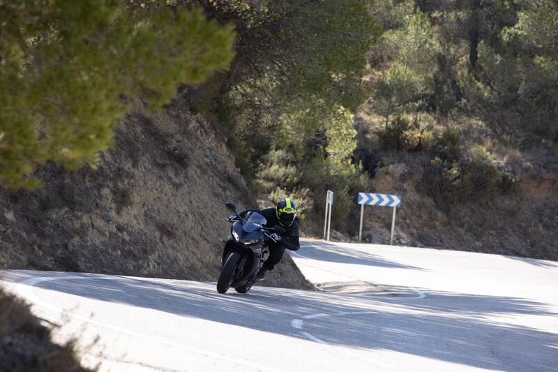 Arriviamo a quello che è il parco giochi della Triumph Daytona: il misto. Il motore ha una grinta unica, quella spinta che solo il tre cilindri - Triumph - sa dare. Il propulsore è lineare, progressivo, con una spinta costante dai 3.000 giri/min (dove viene erogata già l'80% della coppia massima) fino al fondo scala, dove la Daytona 660 ringhia. Il limitatore è posizionato molto in alto e va proprio cercato. Il tre cilindri da 95 CV è molto elastico, consente una guida rilassata e non presenta la minima traccia di on/off, anche la ripresa dalle basse velocità, in sesta marcia, è formidabile. Non si avvertono vibrazioni fastidiose sui semimanubri e sulle pedane.