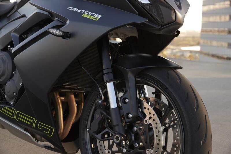 Sulla Daytona 660 non mancano comunque i tratti distintivi della qualità Triumph e le prestazioni dinamiche e motoristiche che caratterizzano le motociclette della Casa inglese.