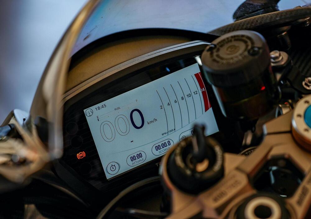 La gestione elettronica deriva da quella della Street Triple, ovviamente adeguata nelle tarature ma anche nelle strategie elettroniche a caratteristiche e destinazione d’uso della Daytona. Rimangono, dalla sorella naked, i cinque riding mode (con il quinto personalizzabile) e il quickshifter bidirezionale Triumph Shift Assist. Il tutto gestito attraverso il bellissimo display TFT - che all’accensione mostra orgoglioso il logo Moto2) e il joystick sul blocchetto sinistro.