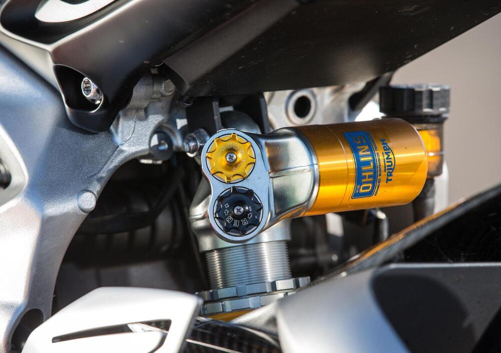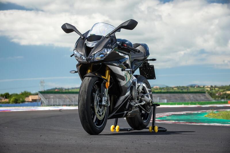 Partiamo naturalmente dal propulsore, nato da quello della nuova Street Triple RS rispetto al quale però guadagna 7 cavalli (atterrando a 130) e un newton/metro di coppia (per un totale di 80) mutuando naturalmente la già citata esperienza maturata da Triumph in Moto2.