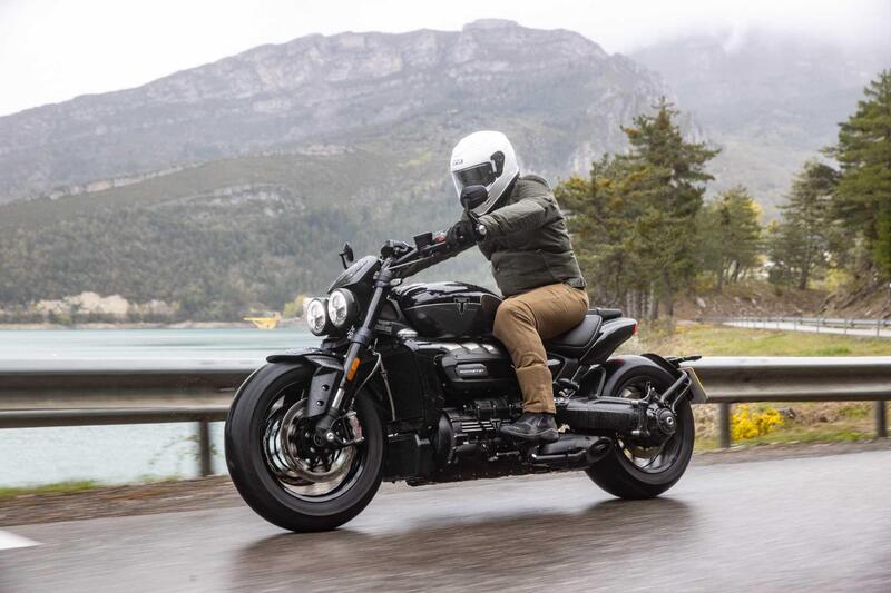 Ora questa non è la versione ufficiale di come sono andate le cose, ma non è nemmeno troppo lontana dalla realtà. Sta di fatto che un progetto forse all'apparenza strampalato, sicuramente esagerato, ha saputo in vent'anni diventare un punto di riferimento in un mercato di nicchia ma prestigioso. Dalla prima Rocket 3 del 2004 ne sono cambiate di cose e nel 2019 c'è stata la vera rivoluzione con un modello completamente nuovo che puntava tutto su una guida piacevole e decisamente più sportiva che in passato. Oggi, per l'importante anniversario del ventennale, arriva una nuova edizione denominata Storm che ad un look ancora più dark e curato nei minimi dettagli aggiunge potenza (+15 CV) e coppia (+4Nm) e toglie un chilogrammo di peso dalle ruote. Sono due le versioni proposte: R e GT si distinguono per un allestimento che, di fatto, può passare dall'una all'altra. Così se un giorno ci pentissimo di aver preso la R potremmo trasformarla senza problemi in una GT e viceversa, oppure potremmo anche fare un mix delle due se fossi particolarmente esigenti o capricciosi. Le differenze sono tutte nella posizione di guida: più sportiva la R con maggior carico in avanti e pedane centrali, più rilassata per la GT con pedane avanzate regolabili nella distanza, sella con diverso disegno e manubrio più vicino al busto del pilota per una postura più eretta. Si aggiungono poi il windscreen, le manopole riscaldabili di serie e una maggiore accoglienza anche per il passeggero che può contare su sella rialzata e sissybar.