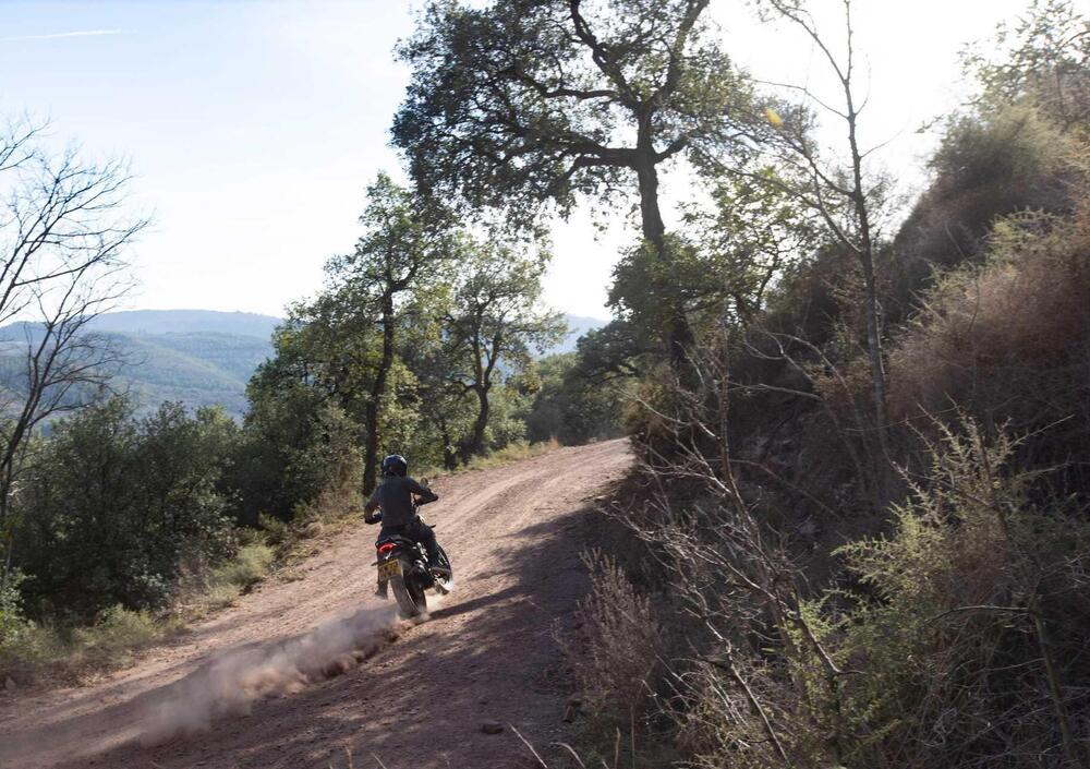 Siamo rimasti piacevolmente stupiti dal comportamento in fuoristrada della Scrambler 400 X. Il manubrio è stato allargato, le pedane abbassate e ora l'interasse è più lungo, troviamo un cerchio da 19. Tutte importanti modifiche tecniche che rendono la Scrambler 400 X piacevole da guidare fuori strada. Siamo nel pieno controllo della moto, si riesce a spingere sulle pedane e la posizione in piedi è naturale. Non aspettiamoci il comportamento di una specialistica, la Scrambler 400 X parla un'altra lingua (costa meno) ma su tracciati perlopiù facili è un bel giocattolino.