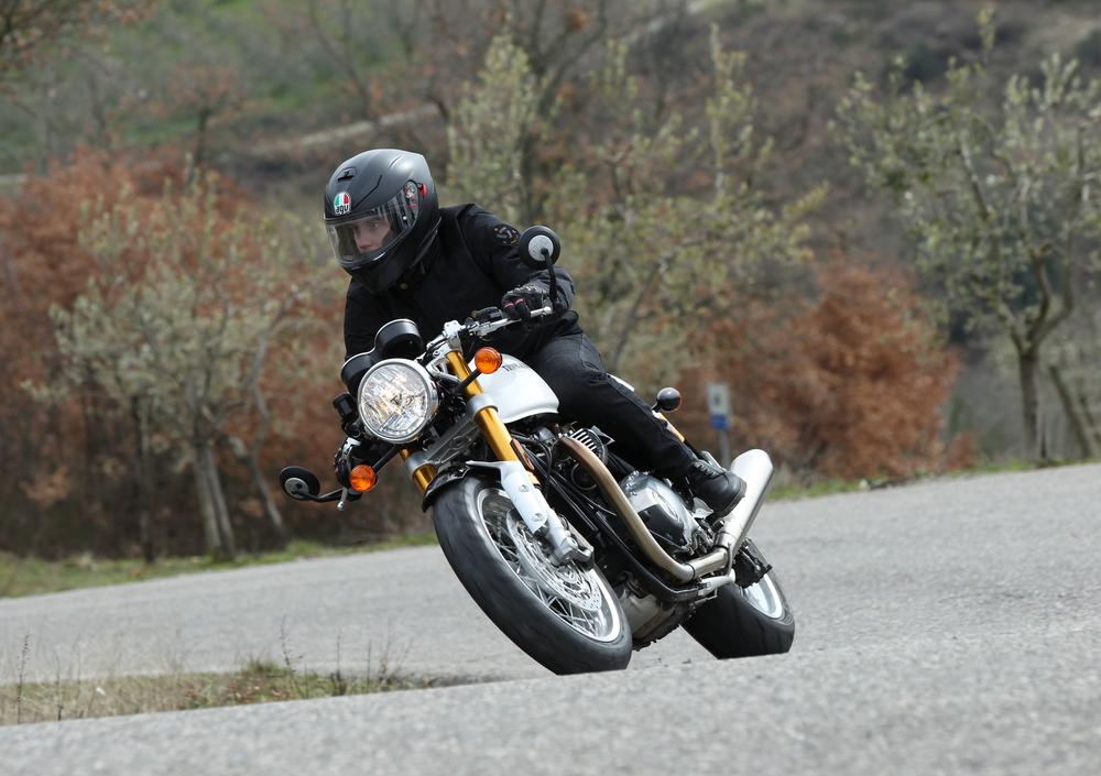 L’ultima moto che abbiamo testato è stata la Thruxton R, la più “spinta” all’interno della gamma delle classiche della Casa di Hinckley. Spinta sia dal punto di vista della posizione di guida che da quello delle prestazioni, grazie al propulsore da 1.200 cc High Torque che, a differenza di quello della T120, sprigiona 97 cv con una coppia di 112 nm.