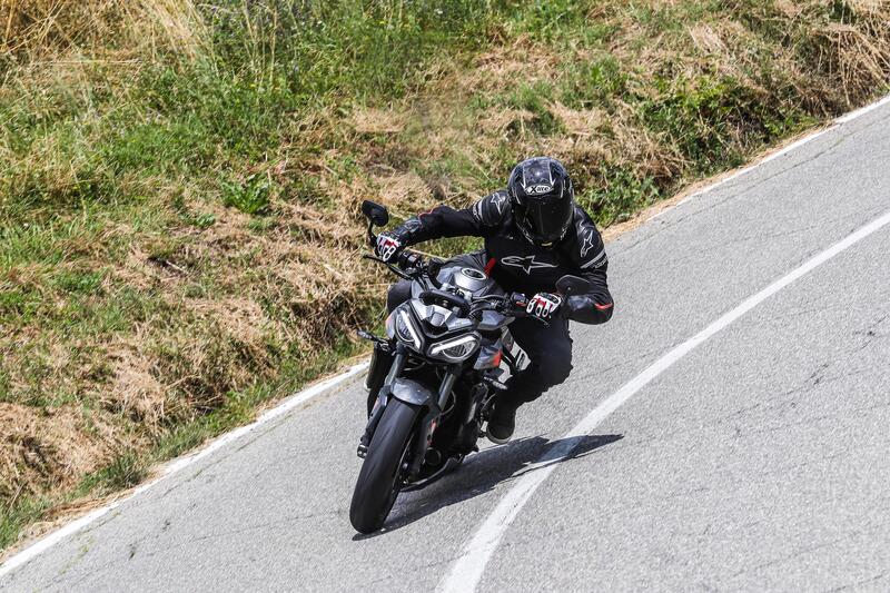 Consultando la scheda tecnica leggiamo una lunga lista di migliorie e di componenti dedicati alle corse. I pregiudizi potrebbero farci pensare ad una moto difficile da guidare, non potremmo pensare cosa più sbagliata. Anche lei è una Triumph, condivide tutte le qualità della Street Triple RS aggiungendo ulteriore stabilità alle velocità più sostenute grazie ai semimanubri ed un avantreno, più in generale, da moto da corsa. Grazie appunto alla posizione più "all'attacco" guadagnamo precisione sul veloce perdendo qualche punto di agilità nei tornanti molto stretti.