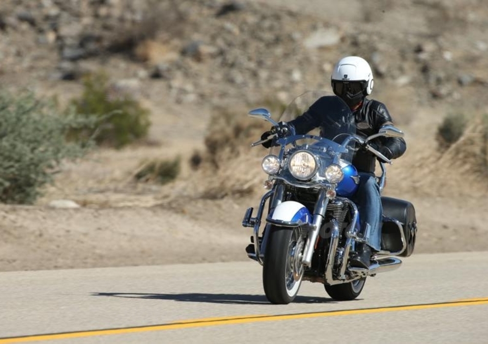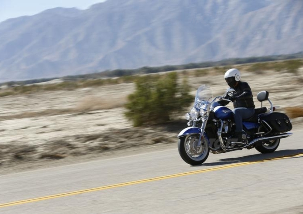 L’enorme bicilindrico parallelo di 1.699 cc ha una risposta dolce al richiamo del gas, ma sa essere anche rapido quando si cerca la massima potenza e chiama in causa di rado il cambio a sei marce. La spinta ai bassi è forte, ma mai brusca. Consente di riprendere velocità anche in sesta dalle basse andature. Se poi c’è da fare un sorpasso, la Triumph 1.700 stupisce con bell’allungo.