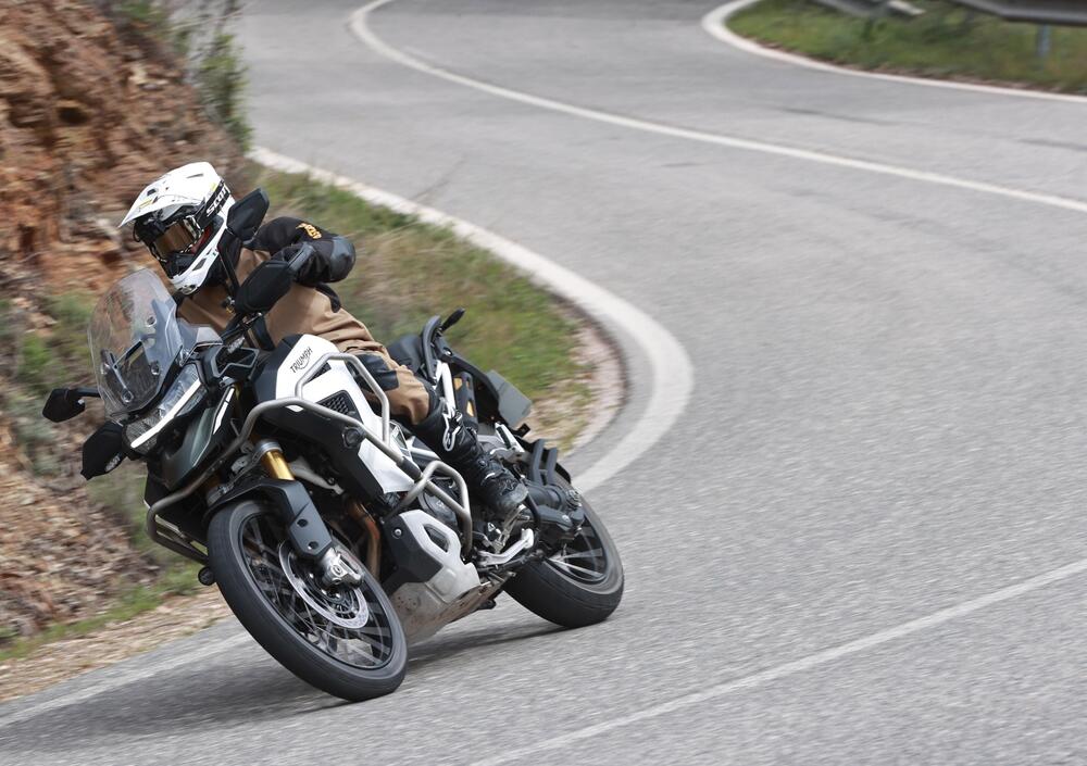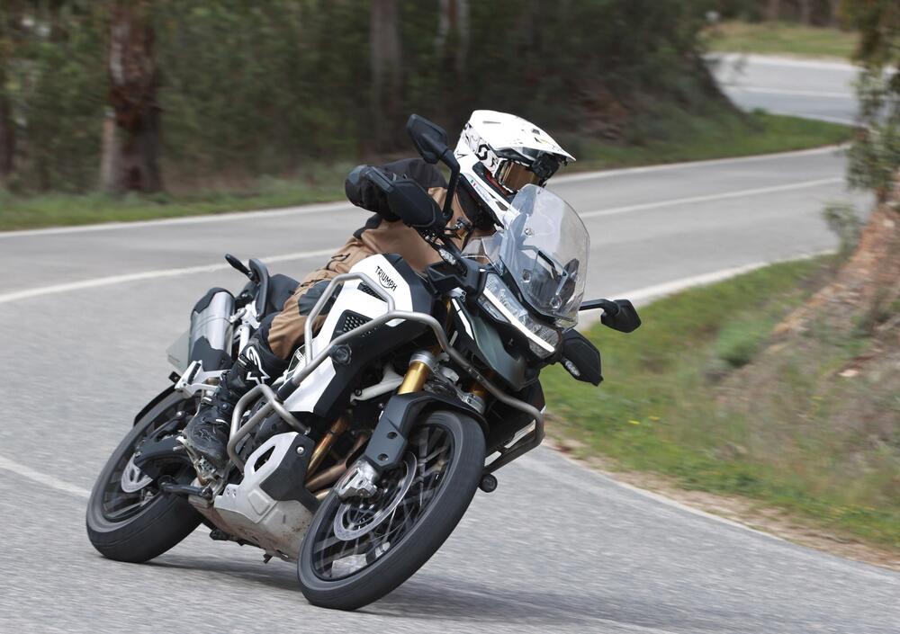 La Triumph Tiger 1200 GT Pro si dimostra amichevole dal primo approccio. Sella accessibile a tutti (85 cm) e peso del tutto gestibile (245 kg col pieno da 20 litri) la rendono immediatamente facile. Il motore a scoppi irregolari vibra poco e gli sfoghi dell'aria dai radiatori laterali sembrano funzionare bene. Durante il test c'erano 20°, ma non abbiamo mai sentiro l'aria calda investire le gambe. Bellissima e chiara la strumentazione TFT, dotata di una grafica che vedremmo bene anche sulla Tiger 900 (il cui contagiri pecca di immediatezza).