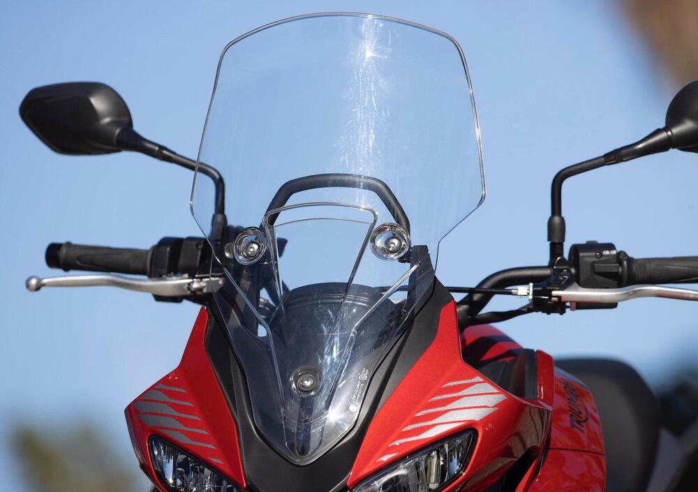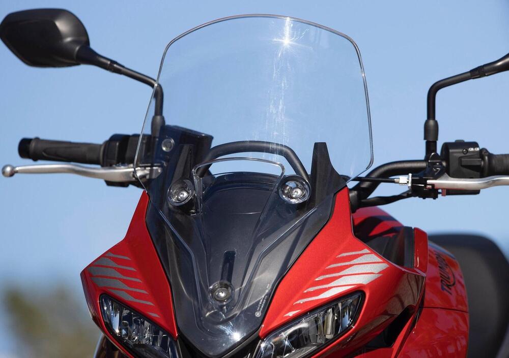 Anche qui, la sostanza è fondamentalmente condivisa con la sorella Trident: la piattaforma prevede un sistema ride-by-wire che consente l’implementazione di due riding mode (Road e Rain) che modulano la risposta all’acceleratore e l’intervento del controllo di trazione (disattivabile). I gruppi ottici sono naturalmente full-LED, con indicatori di direzione auto-disattivanti, e la chiave è dotata di immobilizer integrato.