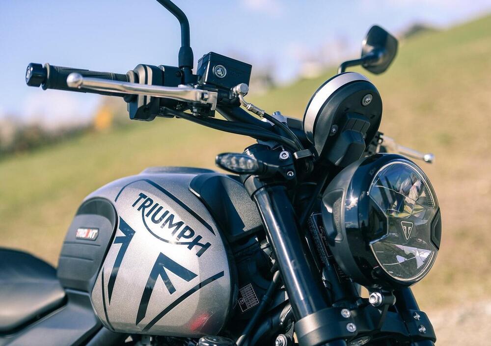 Delle belle verniciature curate, il grande logo Triumph sul serbatoio con i fianchetti in plastica, gruppi ottici LED, una moderna strumentazione TFT a colori tonda, a richiamare la forma del faro, dove visualizzare le info della connettività opzionale MyTriumph (navigatore, GoPro, musica, telefono) e settare i due riding mode disponibili: Road o Rain.