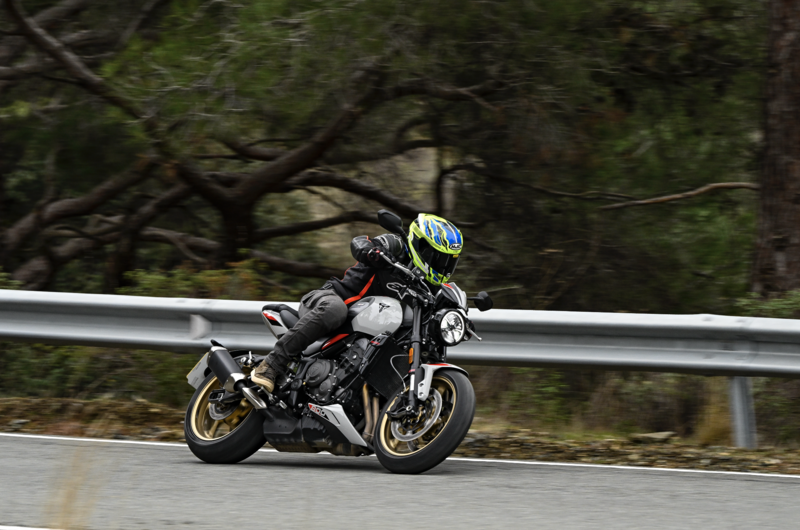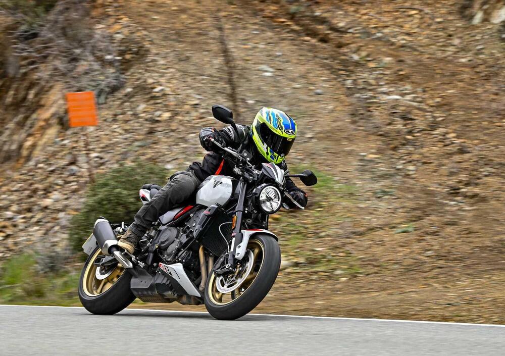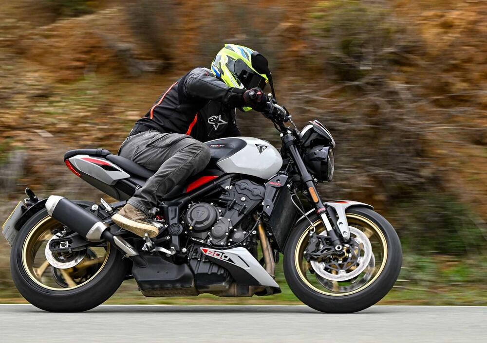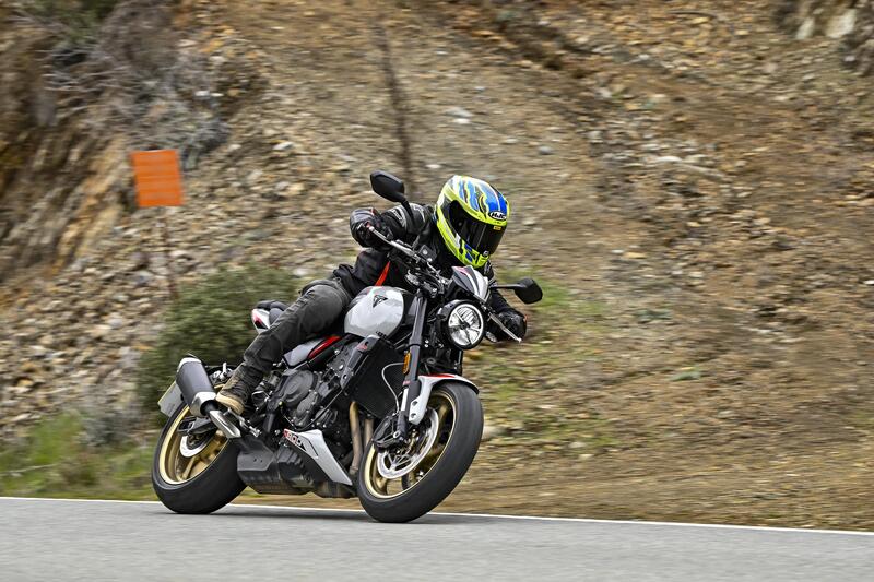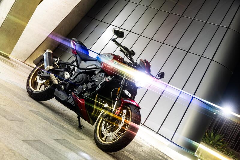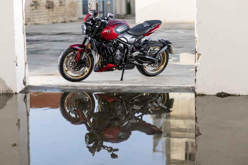 Internamente, Triumph non ha risparmiato: albero motore forgiato, albero a camme dedicato, albero di bilanciamento, bielle forgiate e pistoni ad elevata compressione. Tutti componenti progettati per massimizzare prestazioni e durevolezza. Il sistema di aspirazione e l'airbox sono stati riprogettati per ottimizzare il flusso d'aria, regalando quel "ringhio" profondo e gutturale tipico dei tre cilindri Triumph, che si sprigiona agli alti regimi attraverso lo scarico dall'andamento sportivo con collettori 3 in 1 e terminale rialzato montato lateralmente.