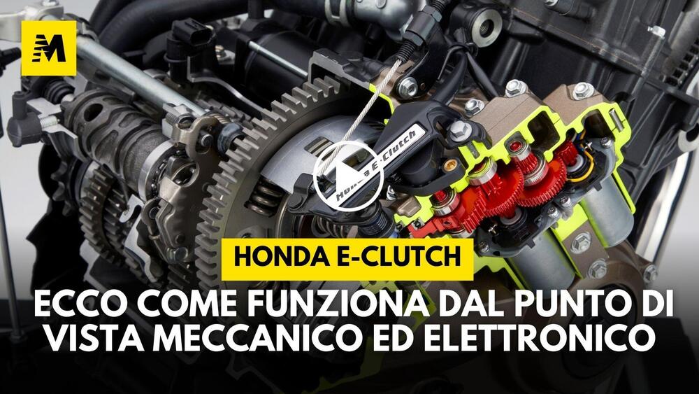 Insieme ad Andrea Venturini di Honda Italia abbiamo quindi analizzato tecnicamente la E-Clutch, il cui funzionamento, come potete anche leggere nella prova, è molto a punto e non è privo di interessanti spunti: innanzitutto il passaggio tra l'azionamento meccanico tradizionale e quello elettronico è fluidissimo e "trasparente", inoltre l'azionamento meccanico ha sempre la precedenza su quello elettronico attraverso un ingegnoso meccanismo, ma non mancano dettagli come i tempi in cui la parte elettronica riprende il controllo della frizione sotto i 1.650 giri/min per favorire, per esempio, le manovre in parcheggio o a bassissima velocità.
